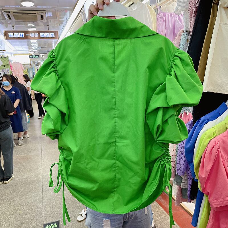 のみくまバタフライスリーブブラウス女性2022年夏トップスCausalDrawString Slim Shirt Solid De サマー 夏物 スリム ソリッドカラー kor67521103185
