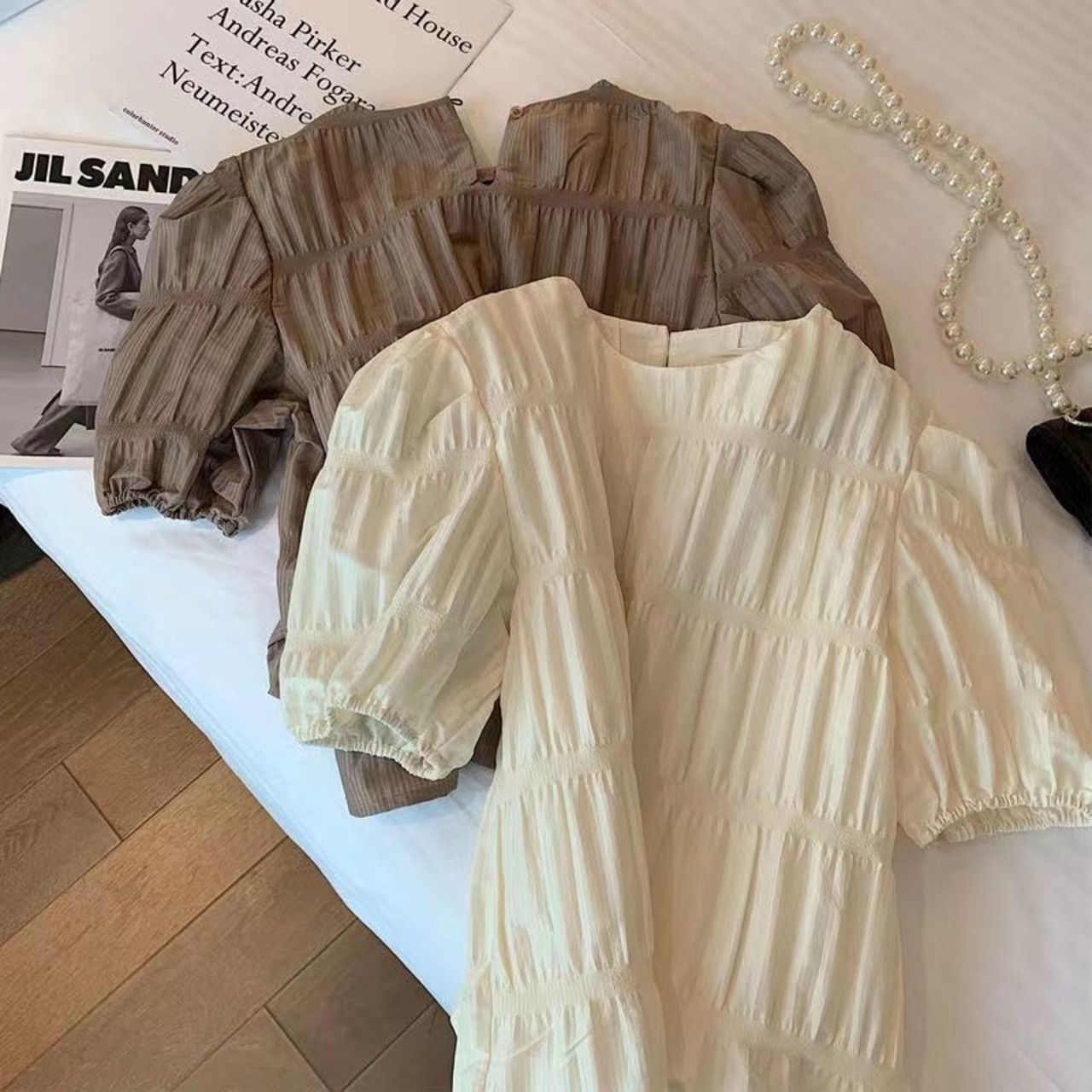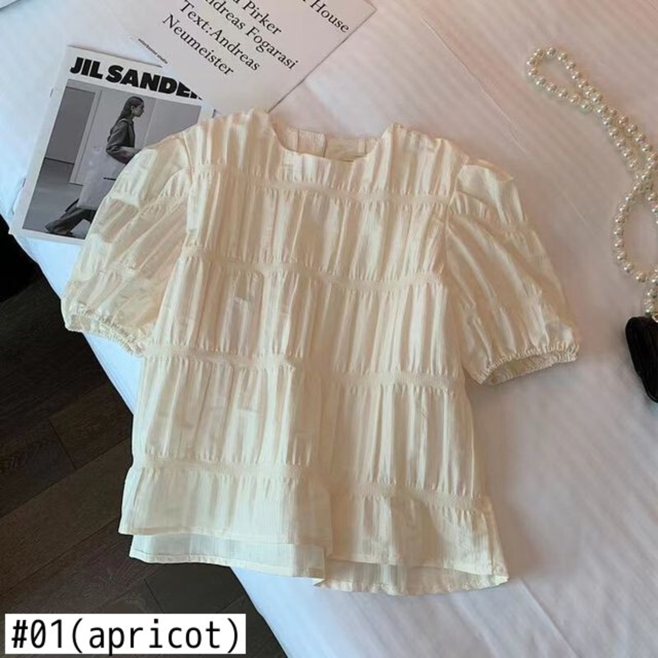 ノミクマレディースサマーパフスリーブOネックブラウスシャツCausalFoldsTops 2022 Chic De Moda 夏物 kor80626770902