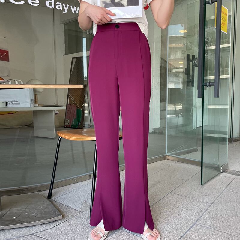 ノミクマシックサマーウーマンスーツパンツウエストロングパンツ2022ソリッドスプリットワイドレッグパンツ 夏物 ワイドパンツ ソリッドカラー kor87853823523