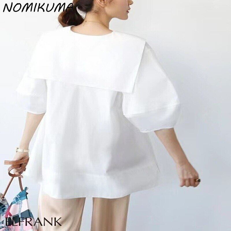 Nomikuma CausalSailorColalrパフスリーブドールシャツブラウスシックトップスフェミニモス 大人ガーリー スウィート キュート カジュアル サマー 夏物 kor70014619391