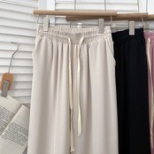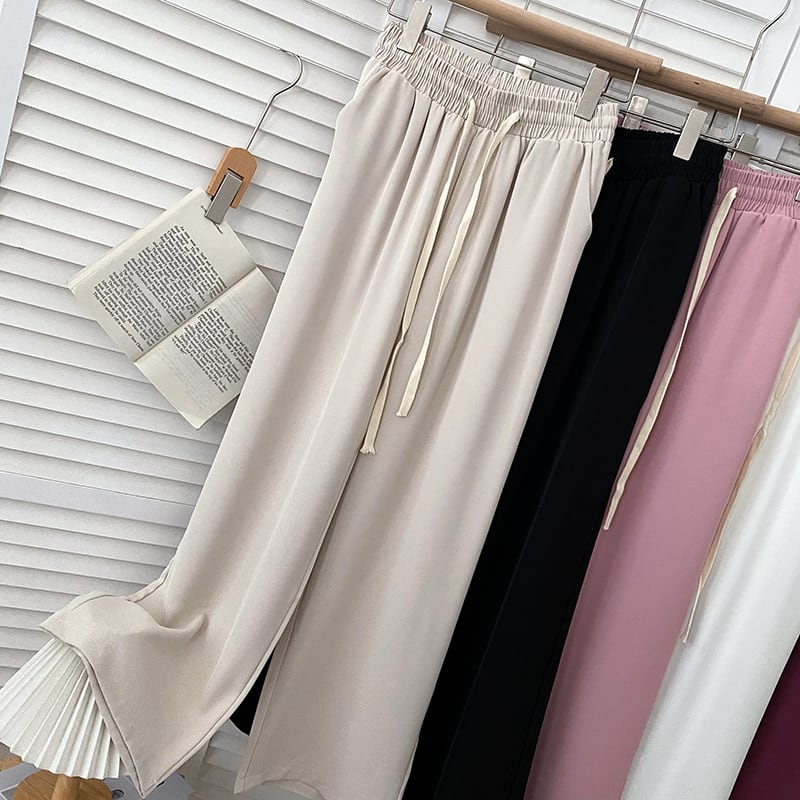 のみくまレースアップウエストウーマンパンツCausalSolidLong Trousers 2022 Summer Style Straight Pants De ロング サマー 夏物 ソリッドカラー kor77945074101