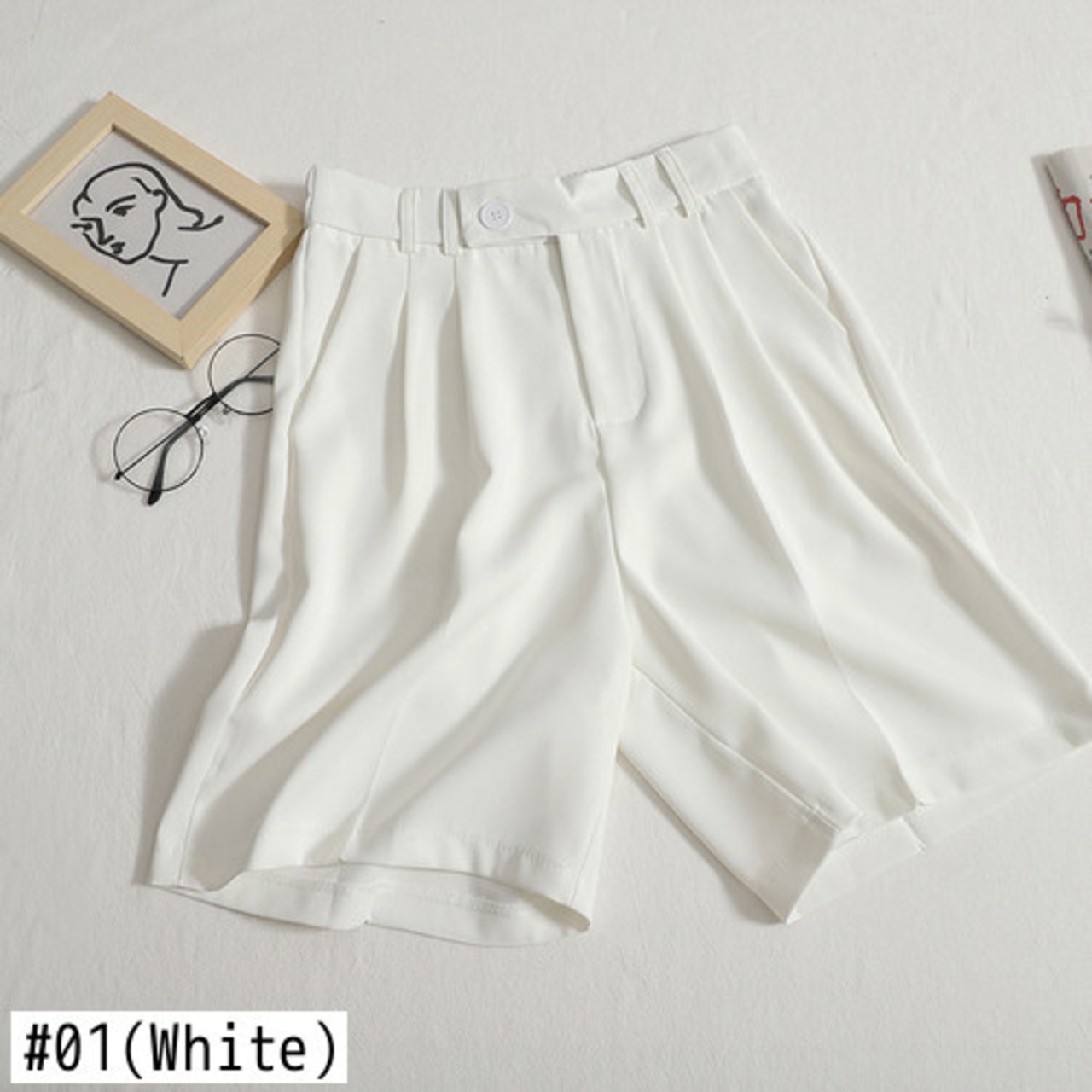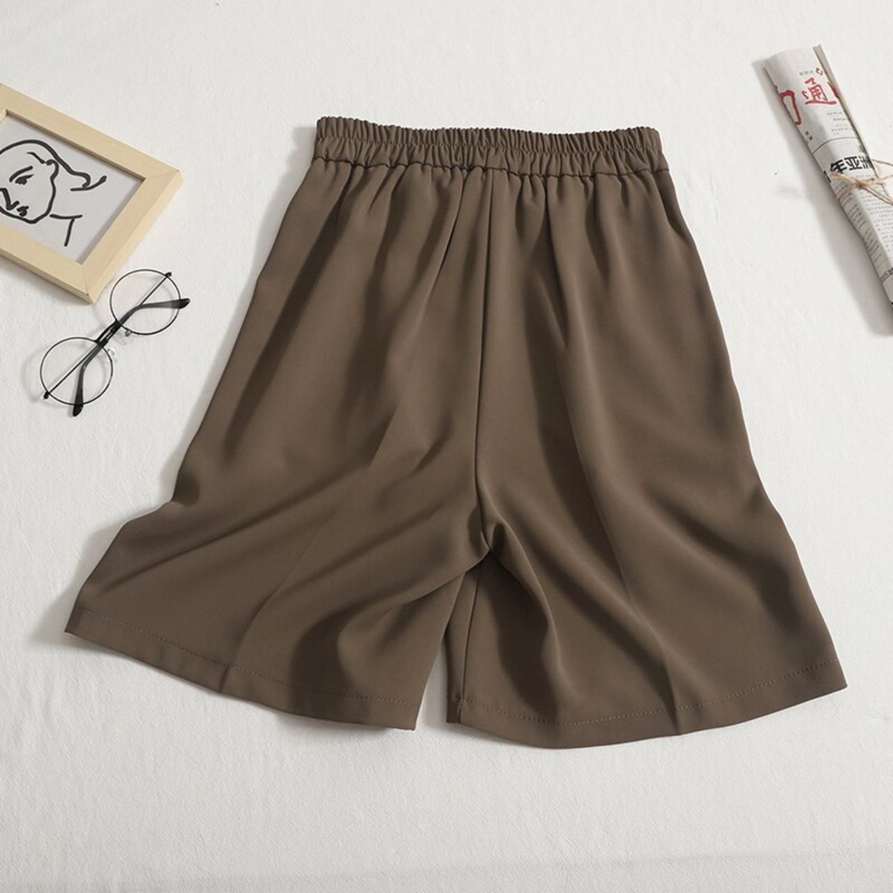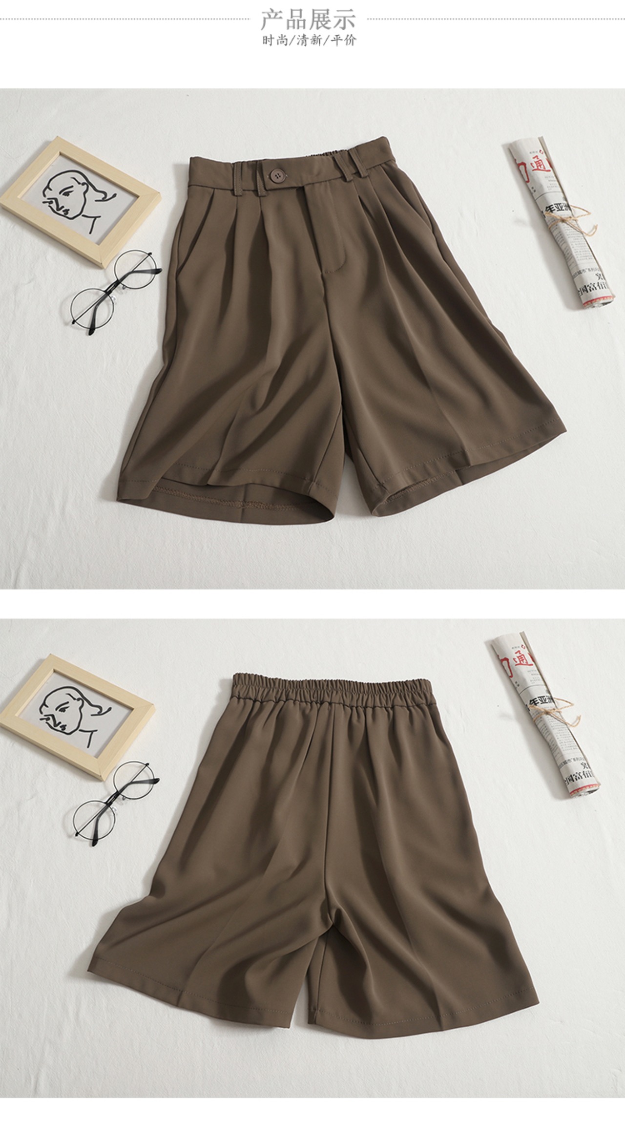 のみくま伸縮性ウエストスーツショーツ女性2022年夏ボトムス原因ソリッドワイドレッグショートフェミニモス エラスティック サマー 夏物 ブルマー ワイドパンツ ソリッドカラー kor4937518262