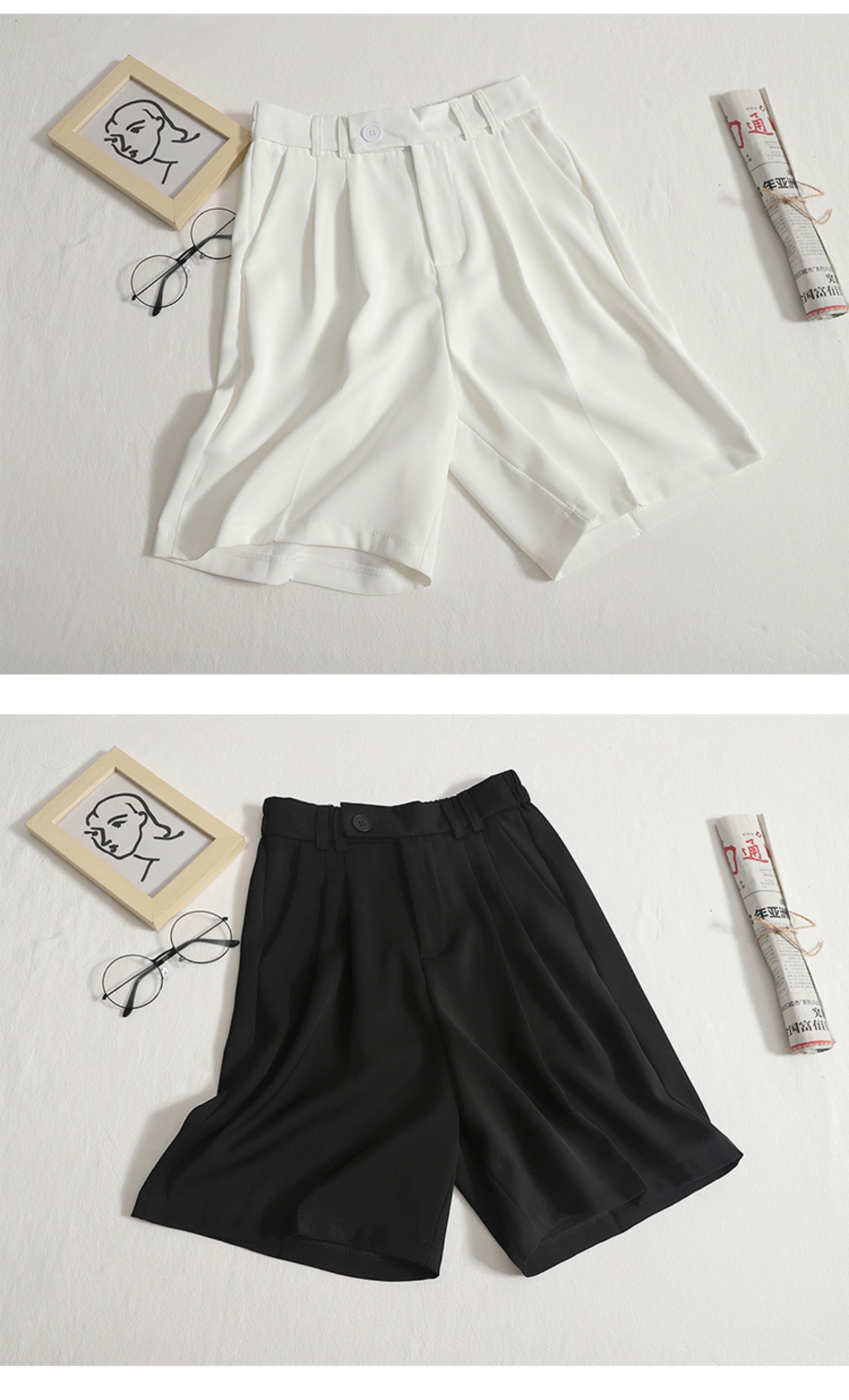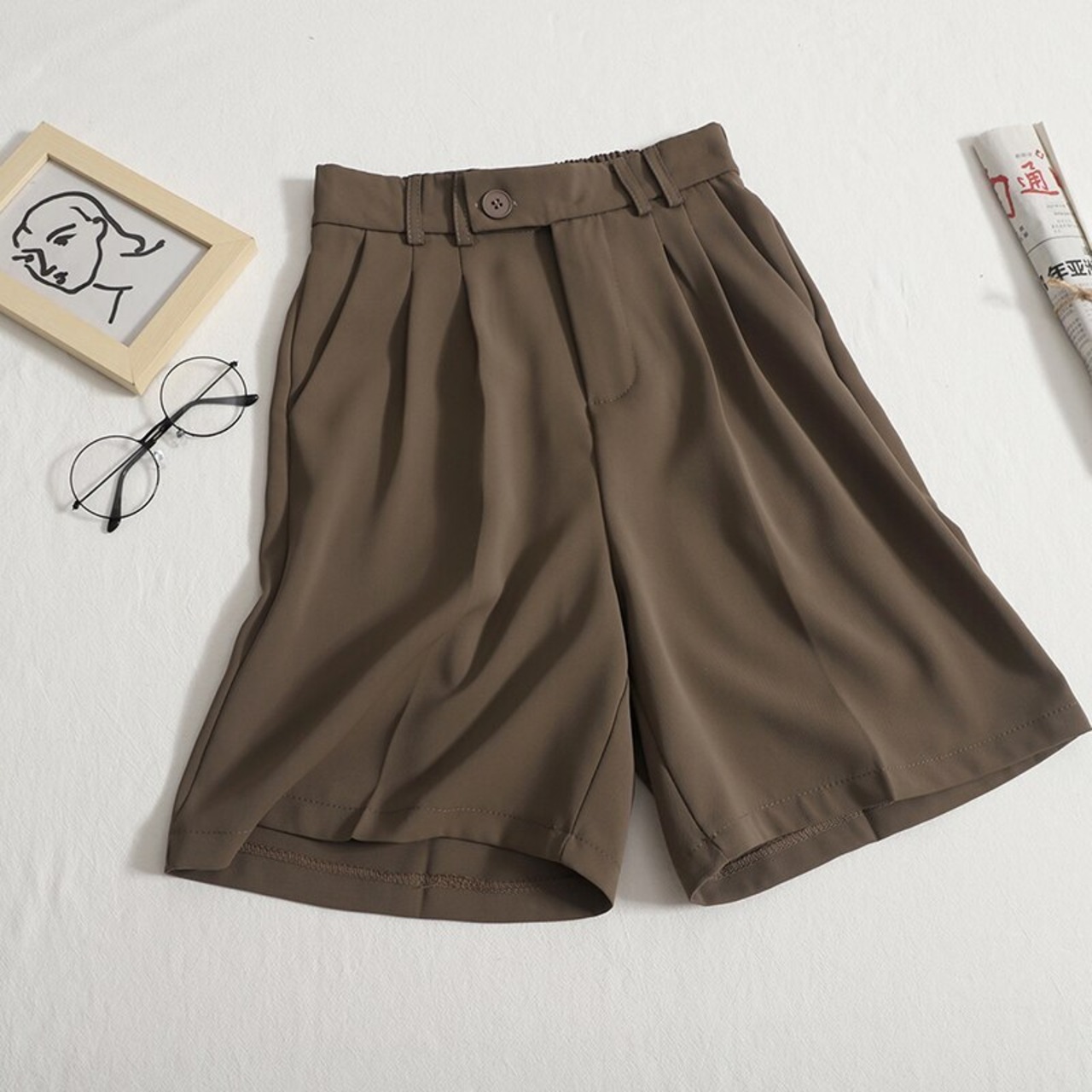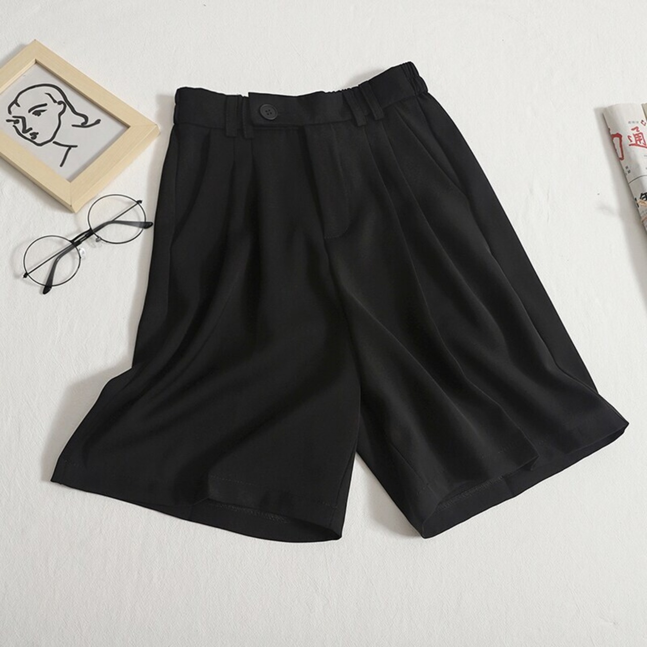のみくま伸縮性ウエストスーツショーツ女性2022年夏ボトムス原因ソリッドワイドレッグショートフェミニモス エラスティック サマー 夏物 ブルマー ワイドパンツ ソリッドカラー kor4937518262