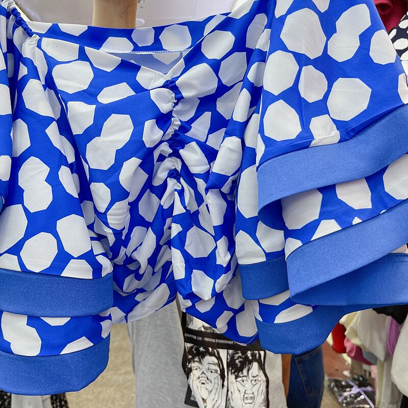 KUSAHIKIシックなフローラルショートシフォンブラウス女性2022年サマートップシャツオフショルダーバタフライスリーブ 夏物 花柄 kor19101072899