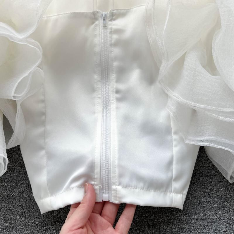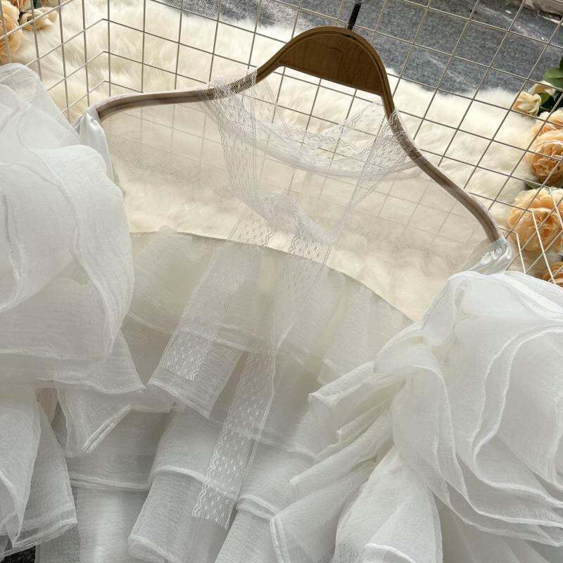 サマーボウノットフリルブラウスセクシーガーゼストラップレストップスウエストショートシフォンシャツ リボン 夏物 kor81764150450