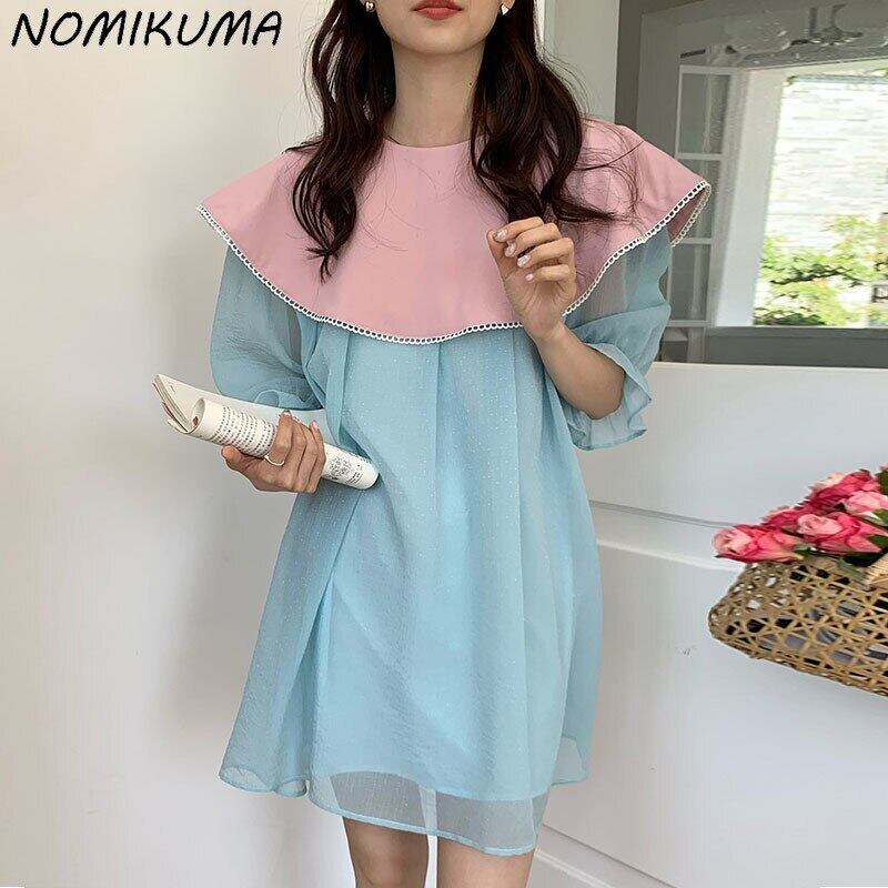 のみくまスウィートヒットカラーピーターパンカラーウーマンドレスシックサマーフレアスリーブドレス2022CausalVestidos De 大人ガーリー キュート カジュアル 夏物 kor93457093151