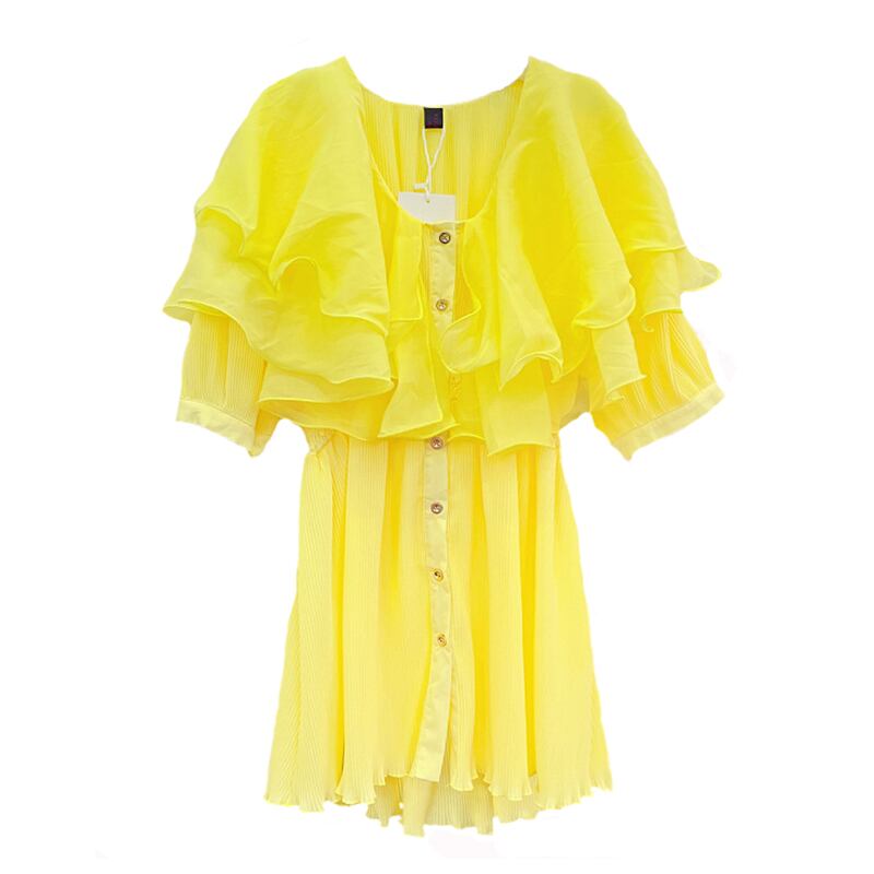 Nomikuma 2022 Folds Chicfon Dress Women Chic Ruffled Collar Style Vestido Summer Single Breasted Mini Dresses ミニ サマー 夏物 ドレス kor97684930776