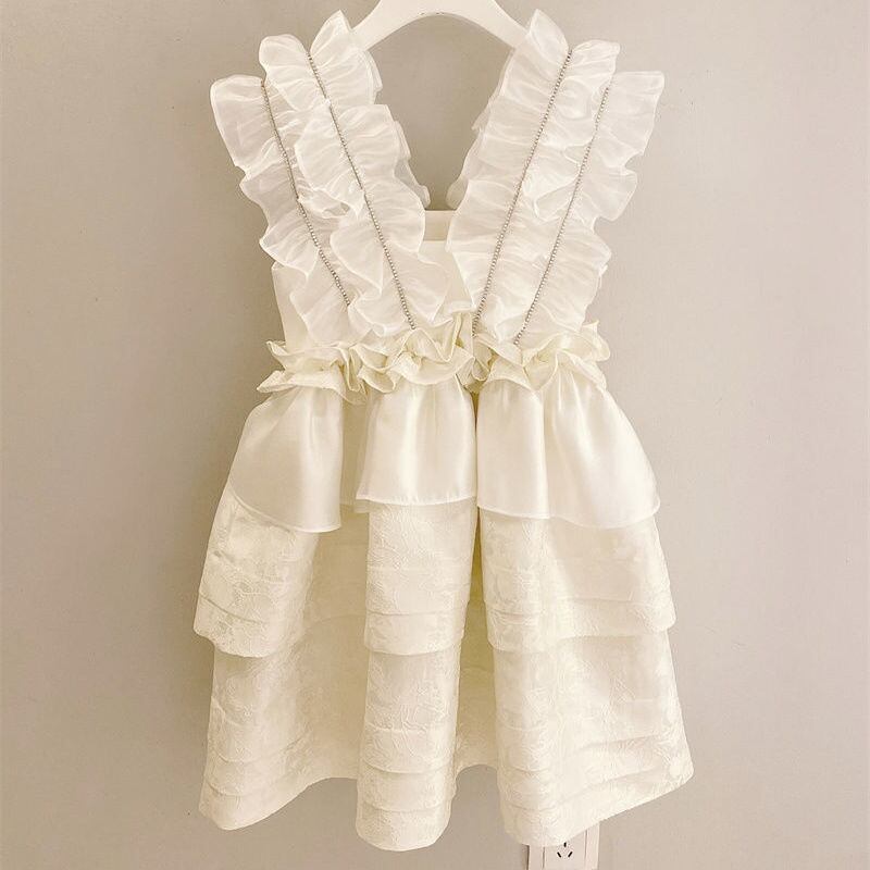 のみくまスウィートフリルVネックノースリーブタンクドレス2022サマーウーマンドレスウエストAラインミニヴェスティドス 大人ガーリー キュート カジュアル 夏物 kor20112742486