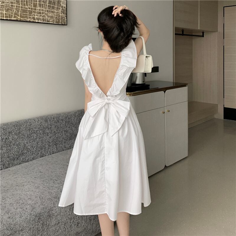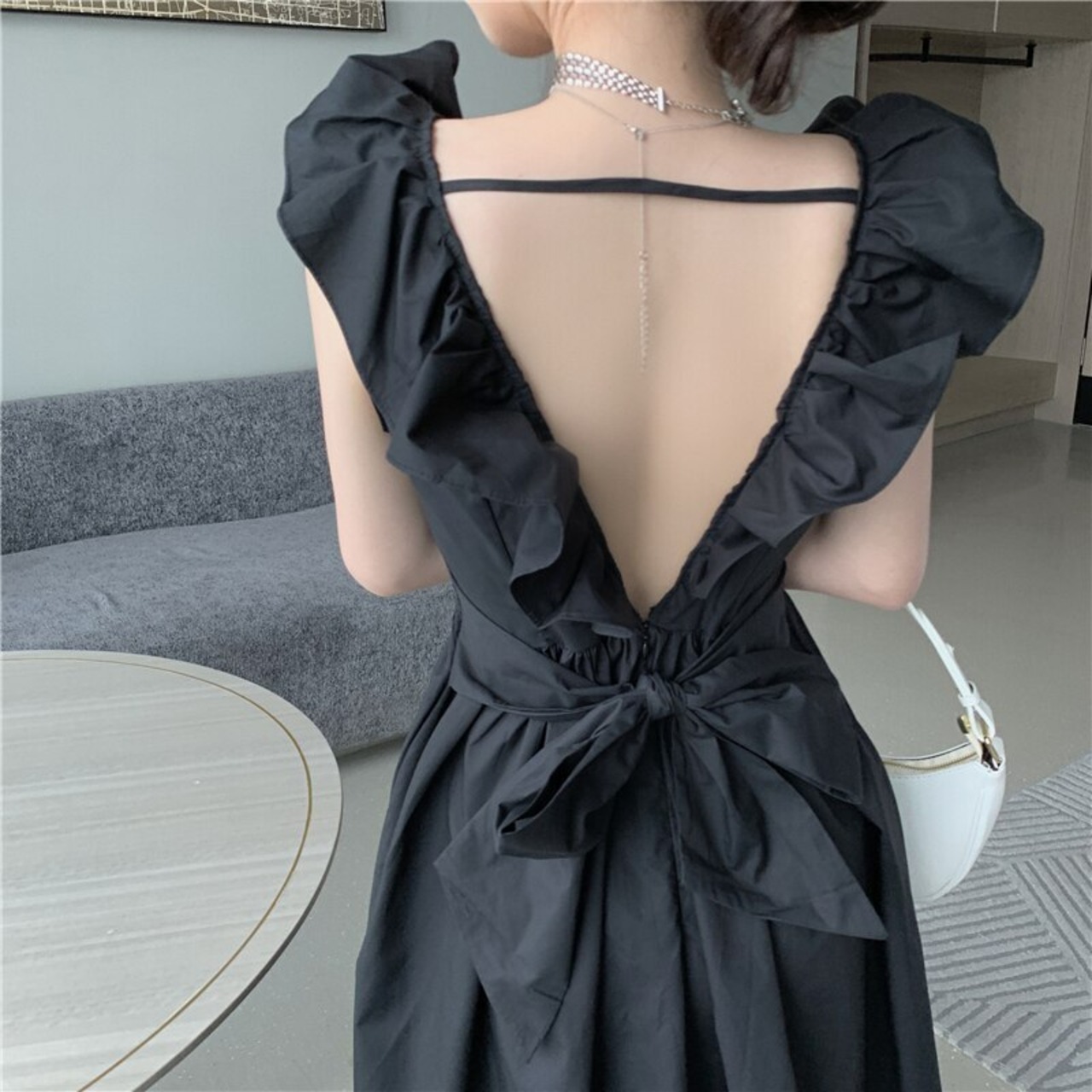 ノミクマセクシーボウバンデージバックレスドレスレディースシックフリルノースリーブスクエアカラードレス2022サマーウエストVestidos リボン 夏物 スクウェア kor98070624631