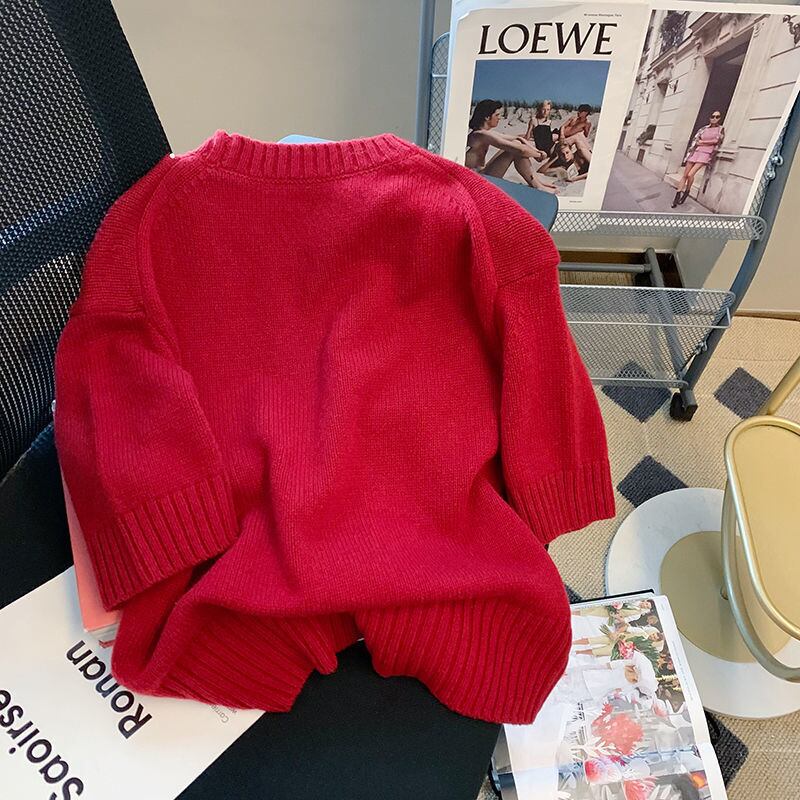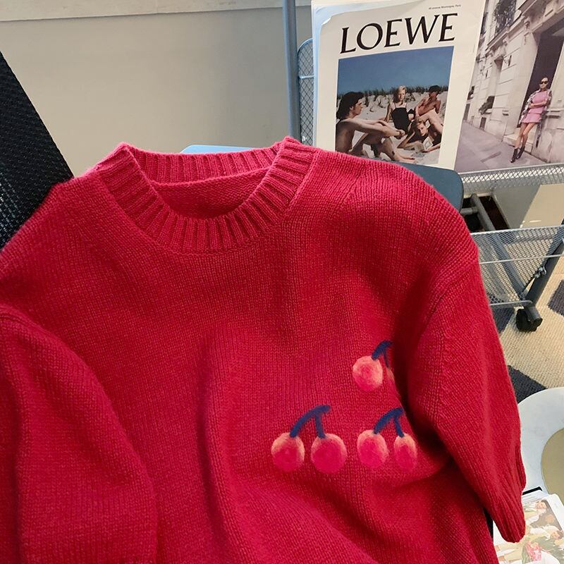 のみくまシック漫画半袖セーター女性2022年夏プルオーバーニットカジュアルOネックスウィートニットトップス ショート ハーフスリーブ 大人ガーリー キュート サマー 夏物 kor27897093086