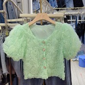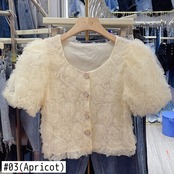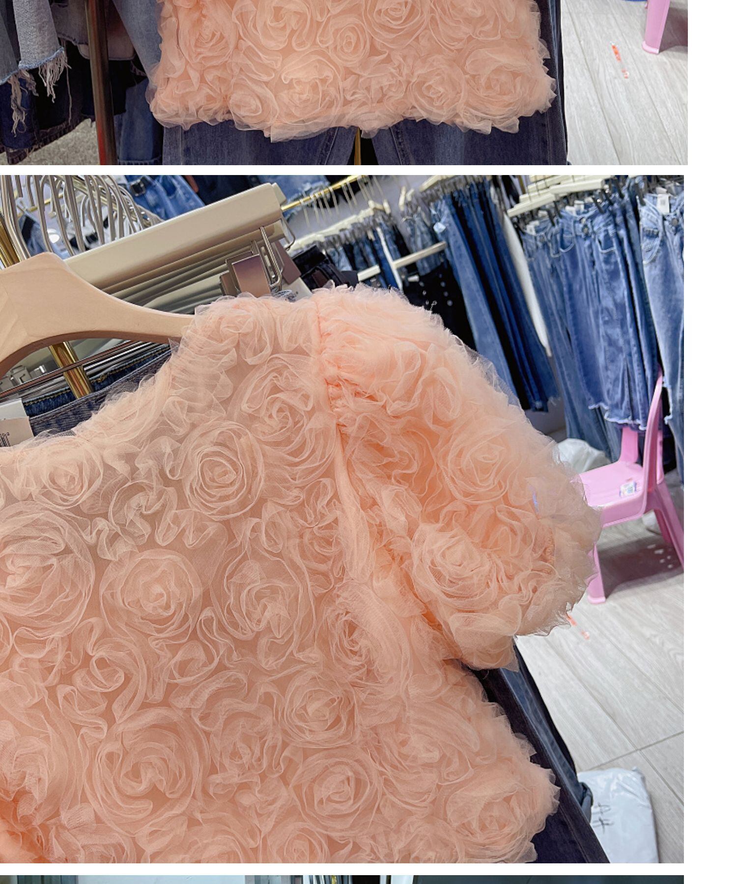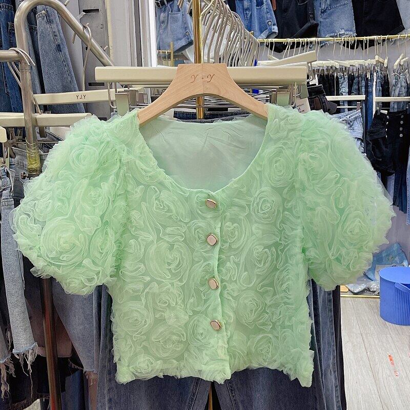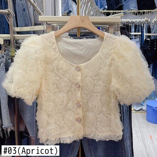 ノミクマシック3DローズフラワーズレディーストップスパフスリーブOネックブラウスシャツ2022サマースウィートパラ 大人ガーリー キュート カジュアル 夏物 フラワーデザイン kor45643911638