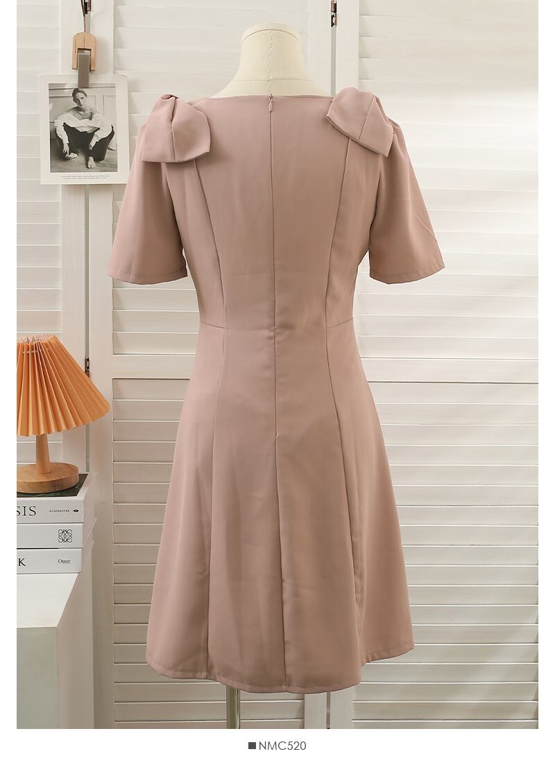 のみくまシックボウノットスクエアカラーウーマンドレス2022サマー半袖ワンピースウエストAラインVestidos ショート リボン ハーフスリーブ 夏物 スクウェア kor10917474586