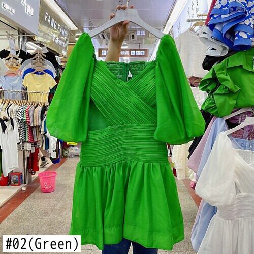 ノミクマクロススクエアカラーウーマンドレス2022サマーパフスリーブウエストホローアウトベスティドドレス 夏物 スクウェア kor9015007868