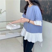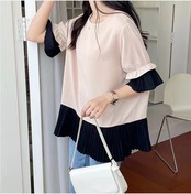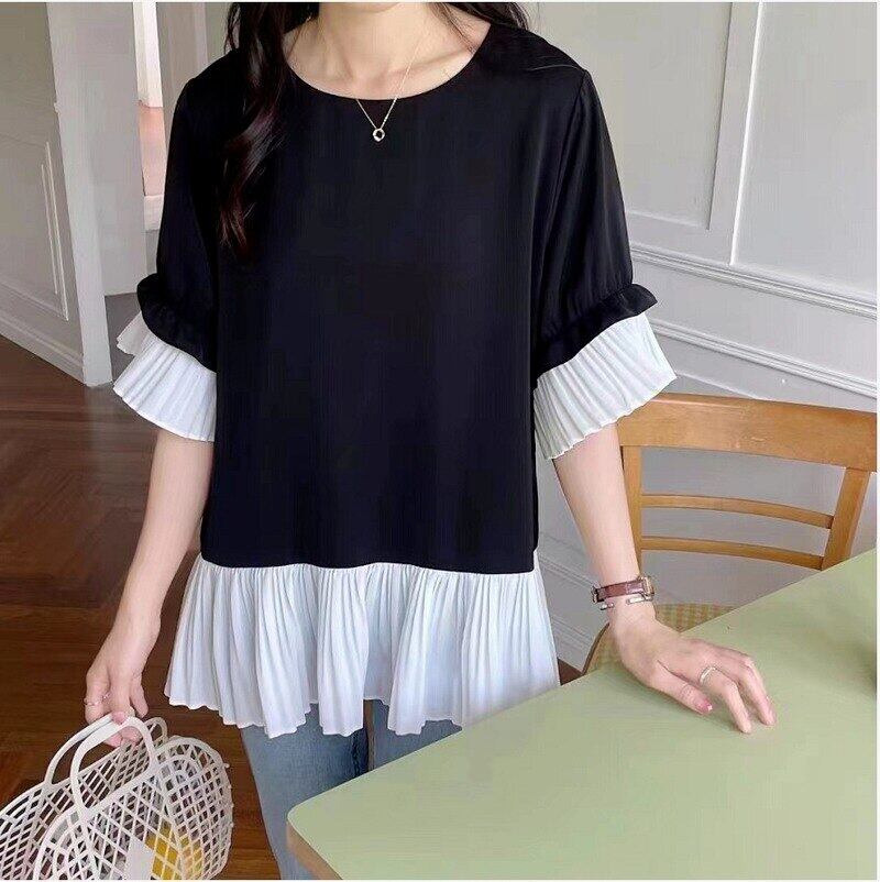 ノミクマ2022レディース服コントラストカラーフォールドフリルフレアスリーブシャツCausalSummerDe Moda サマー 夏物 kor9106919081