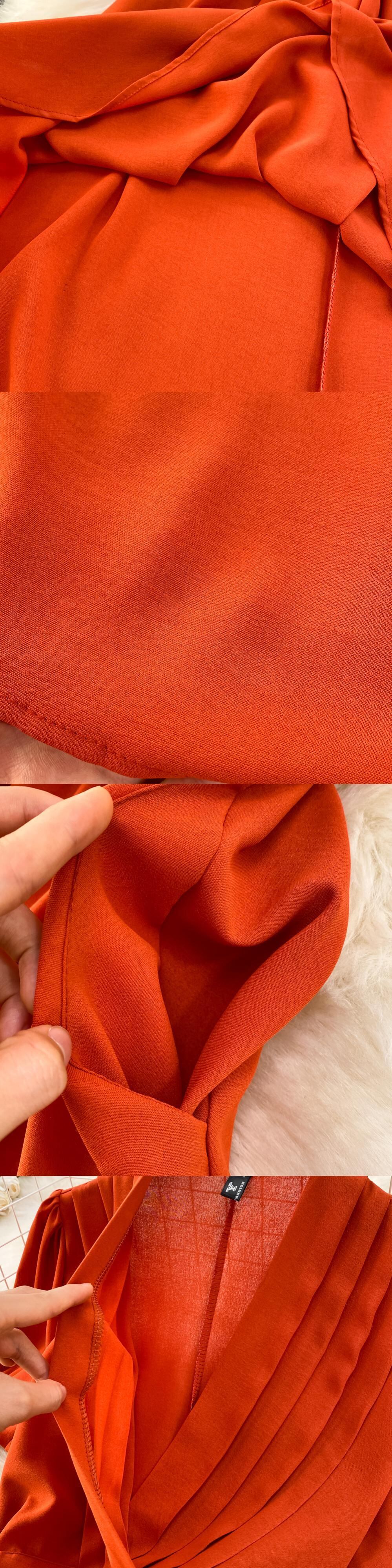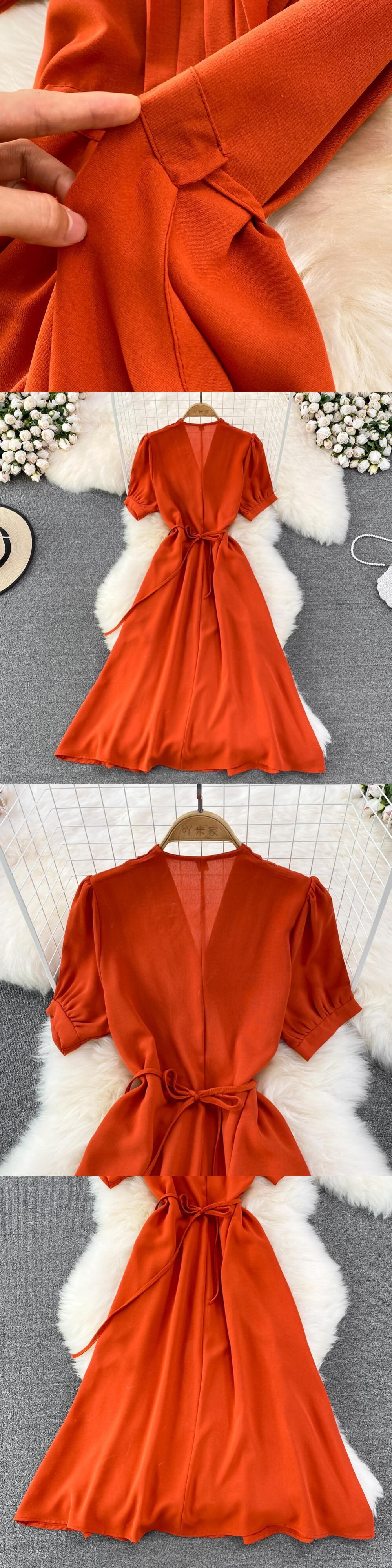 NomikumaFoldsウエストAラインドレスWoman2022サマー半袖VネックワンピースSolidBestidos ショート ハーフスリーブ 夏物 ソリッドカラー kor57524758458