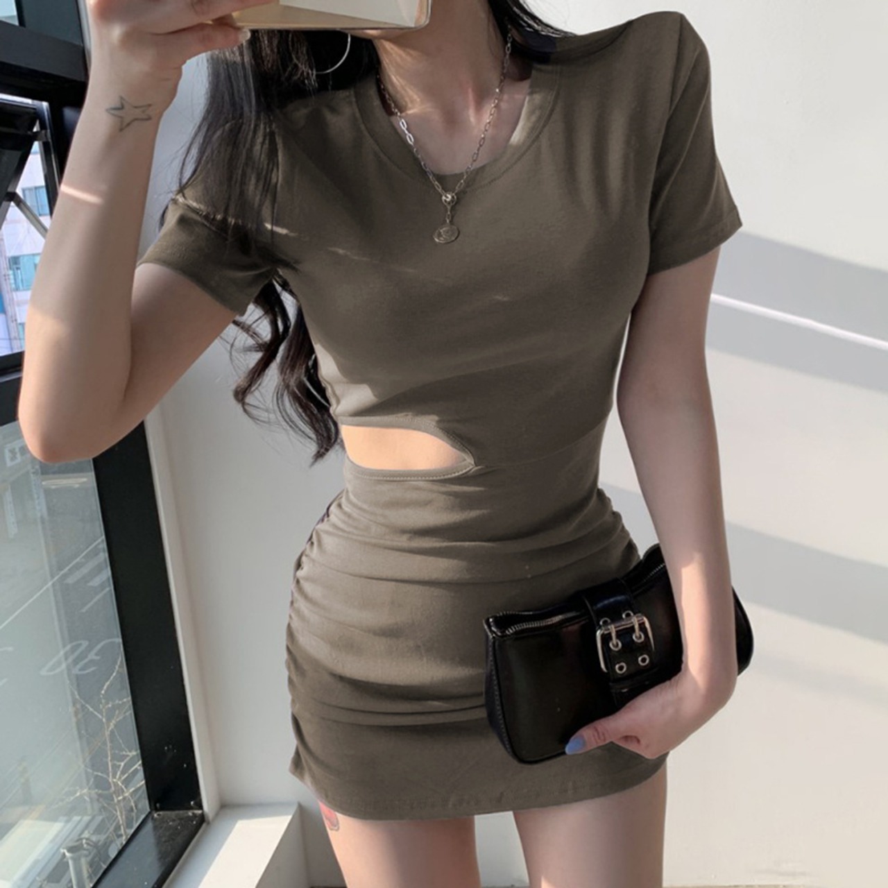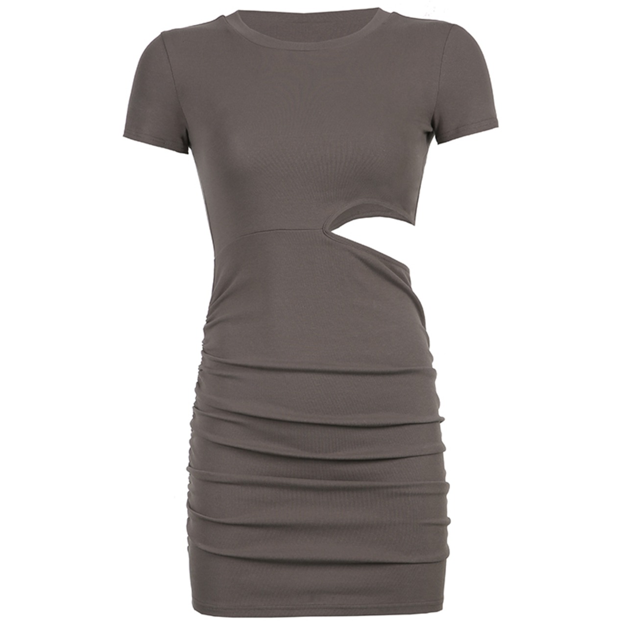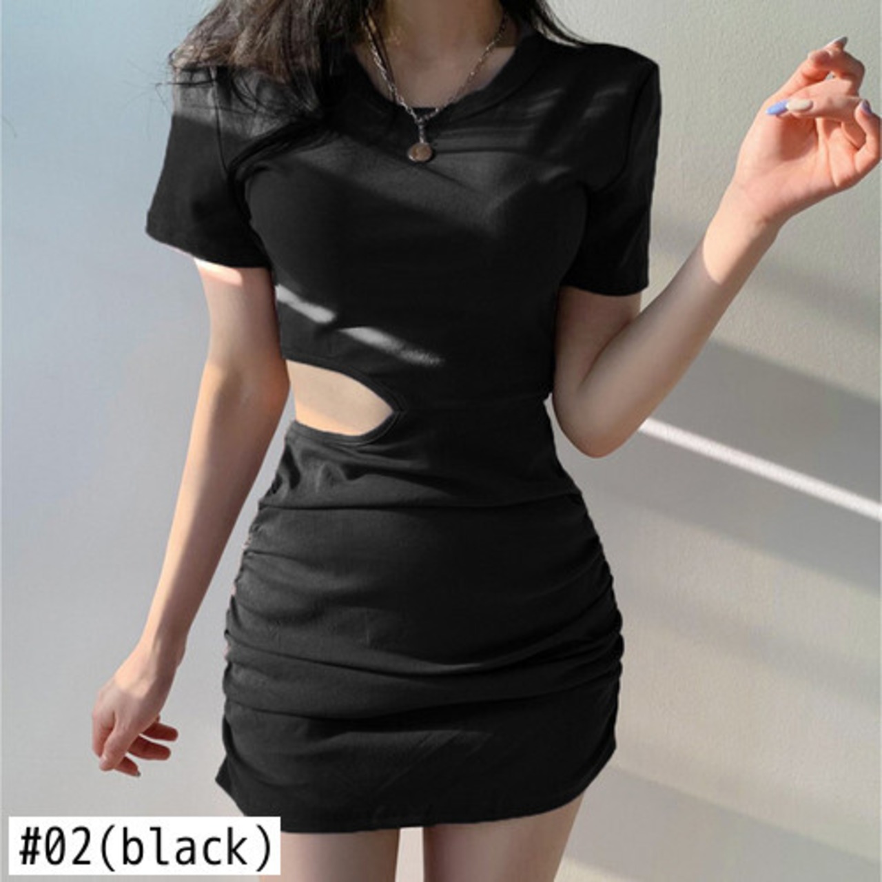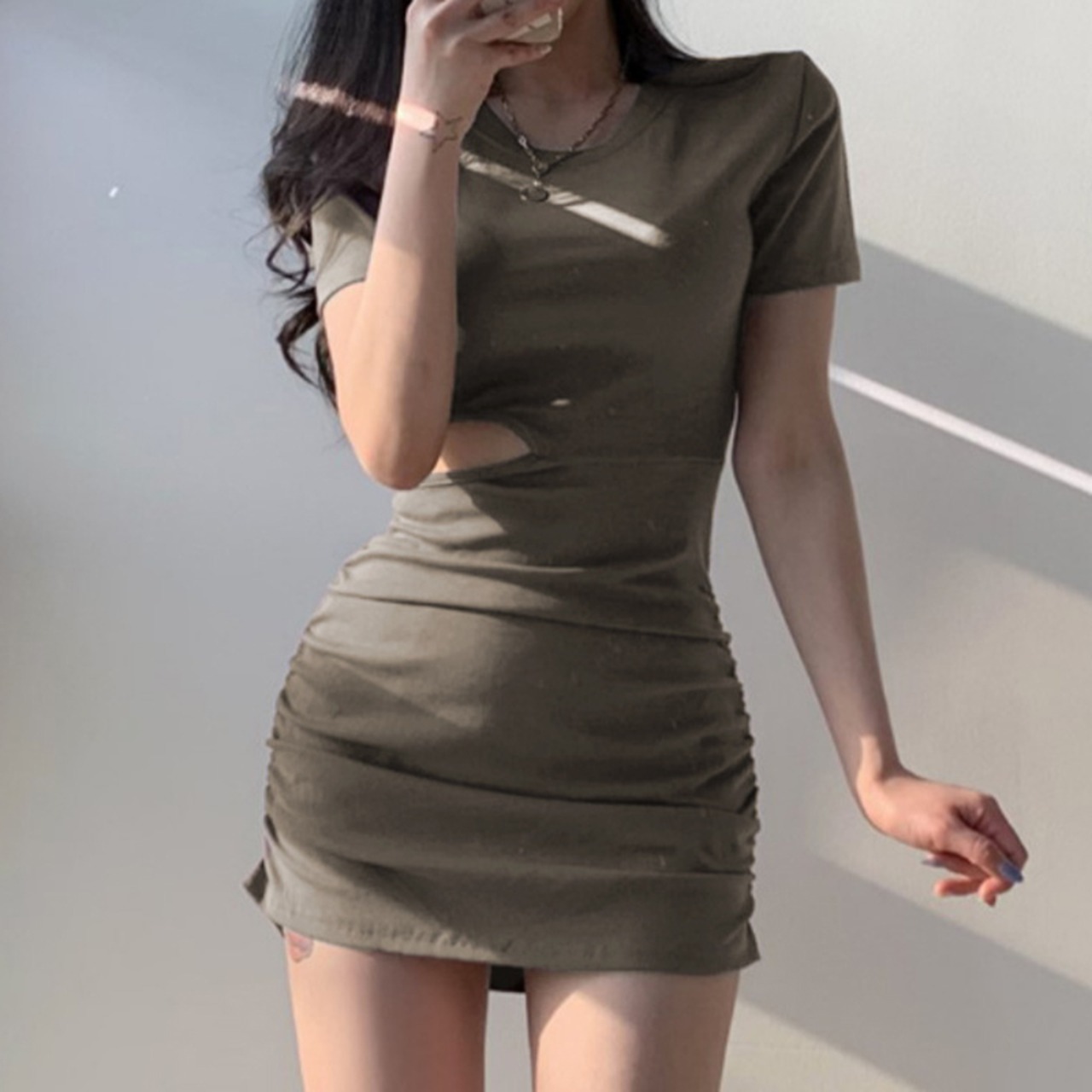 ノミクマ2022夏半袖ボディコーンドレス不規則な中空ウエストドレスセクシーなスリムミニVestidos ショート ハーフスリーブ サマー 夏物 kor32921422140