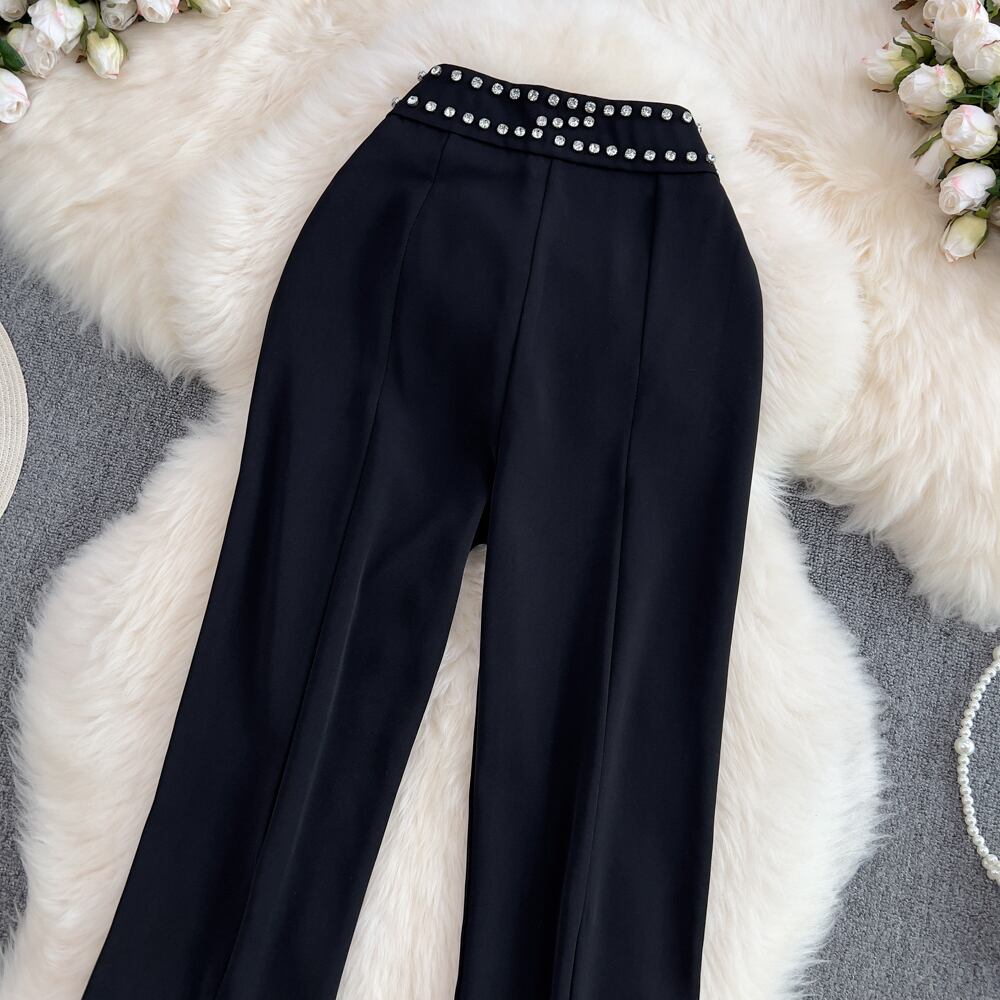 ノミクマダイアモンドウエストウーマンパンツ2022サマーロングパンツソリッドスプリットフレアパンツDe 夏物 ソリッドカラー kor19536580818