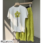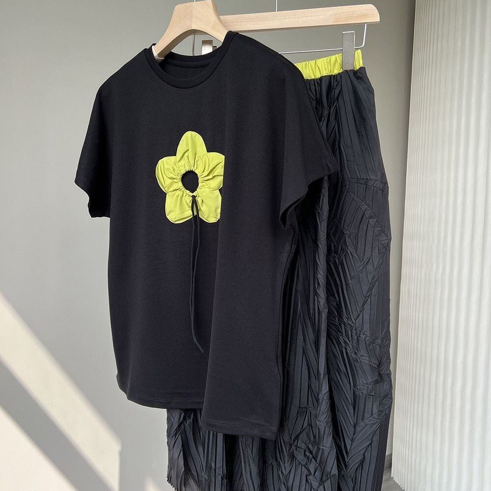 のみくまサマーセットレディース2022ツーピース衣装カジュアルプリントリボン半袖トップスTシャツ+ウエストAラインスカート ショート ハーフスリーブ 夏物 kor19431120287