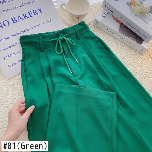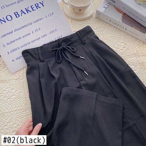 ノミクマ2022サマーウーマンスーツパンツレースアップ伸縮性ウエストロングパンツカジュアルスタイルワイドレッグパンツDe エラスティック 夏物 ワイドパンツ kor26787375630