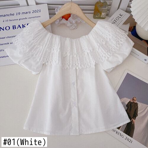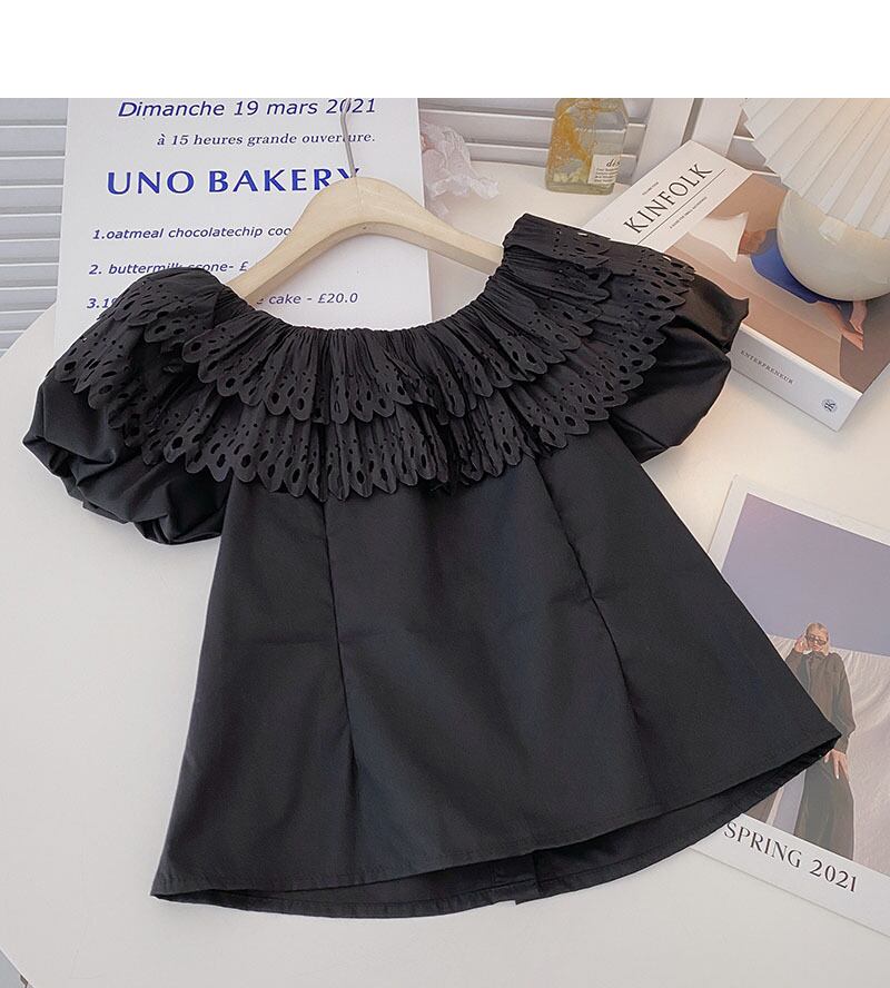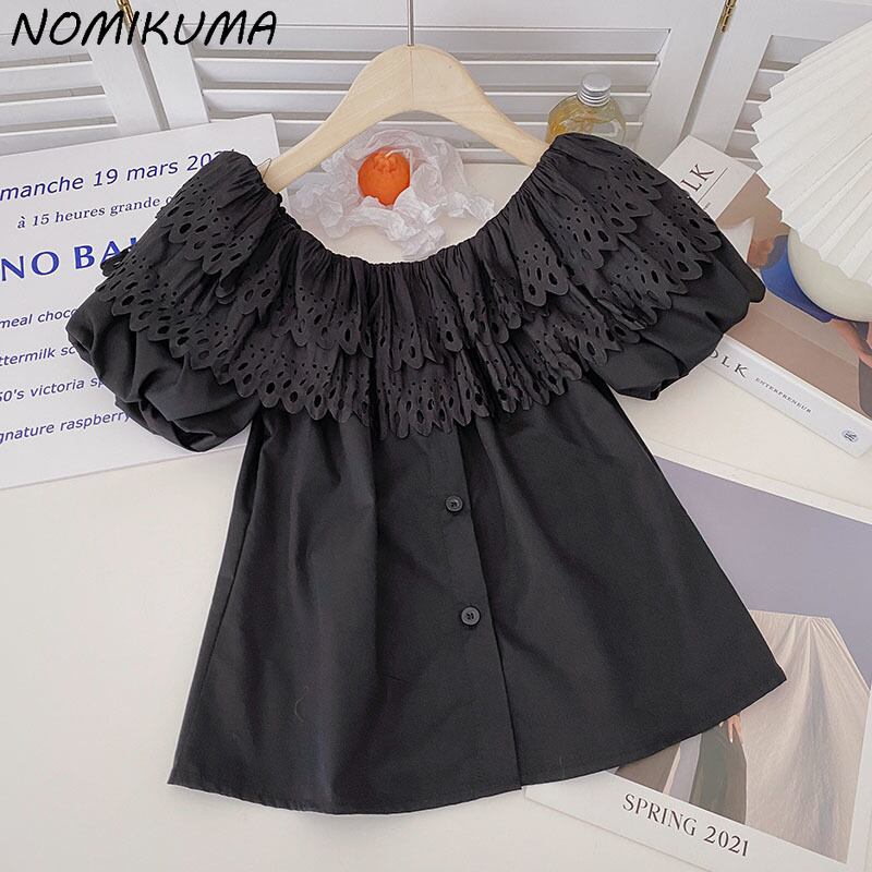 ノミクマシックラッフルオフショルダーブラウストップスCausal2022サマーパフスリーブウーマンシャツスウィートフェミニマ 大人ガーリー キュート カジュアル 夏物 kor27120324401