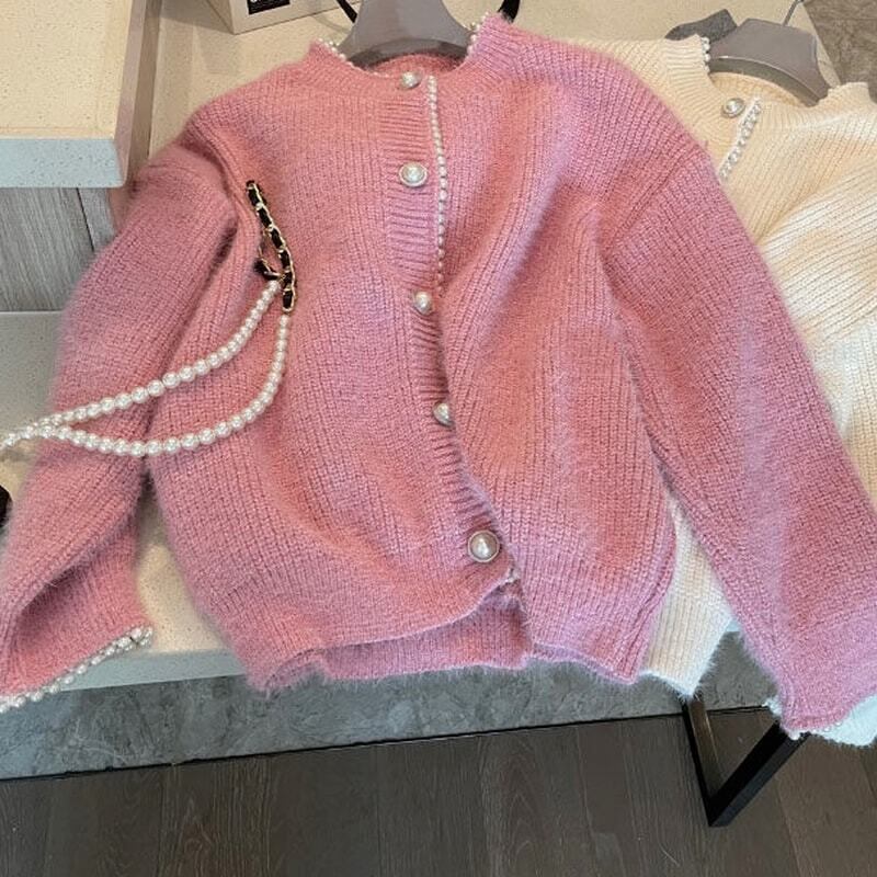 のみくまビーズセーターコートOネック長袖ウーマンニットカーディガン2021秋冬ニット6N855 ロング オータム 秋物 ウィンター 冬物 kor83914461347