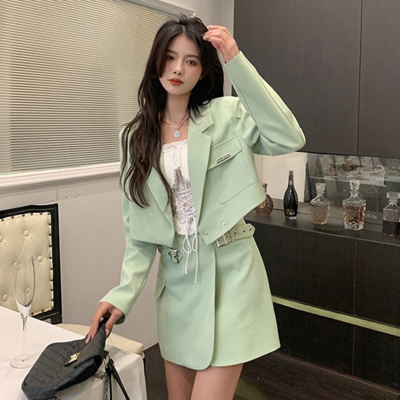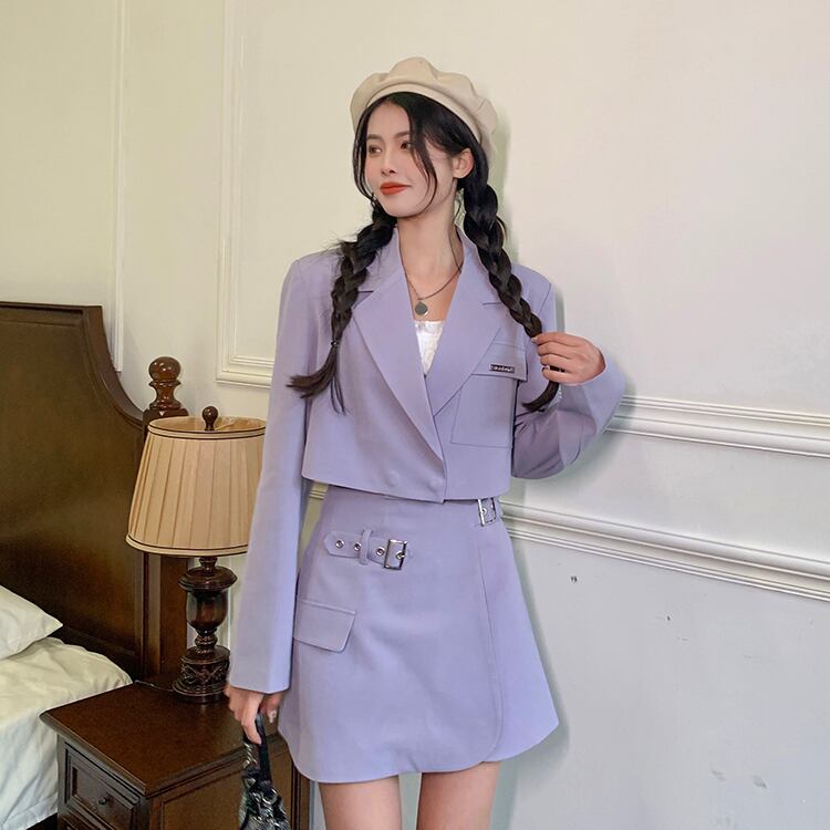 ノミクマレディースツーピースセット2022年春ショートブレザーコート+ウエストAラインミニスカート衣装 スプリング 春物 kor54887235092