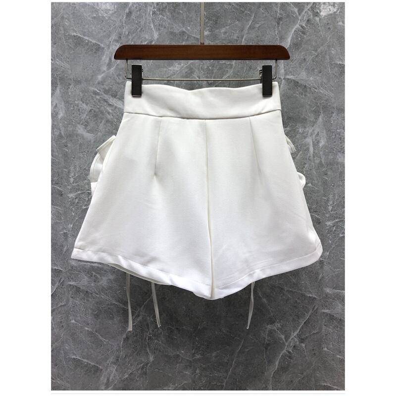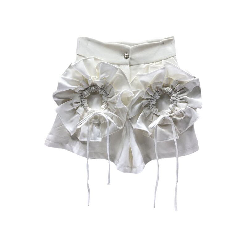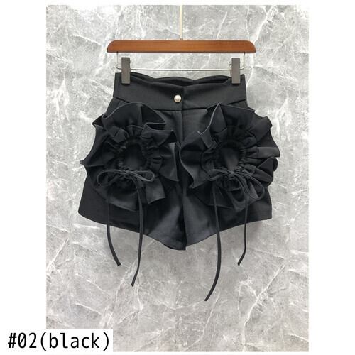 ノミクマスタイルワイドレッグショーツレディースシックな3Dフラワーパッチワークフリルボトムス2022サマーウエストショートフェミニモス 夏物 ブルマー ワイドパンツ フラワーデザイン kor99410863530