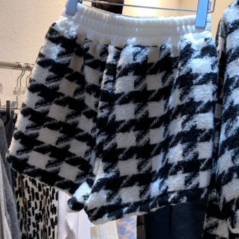 ノミクマ2022春の女性服ヴィンテージチェック柄ニットトップス+ウエストワイドレッグショーツ2点セット スプリング 春物 ブルマー ワイドパンツ ビンテージ kor4659458816