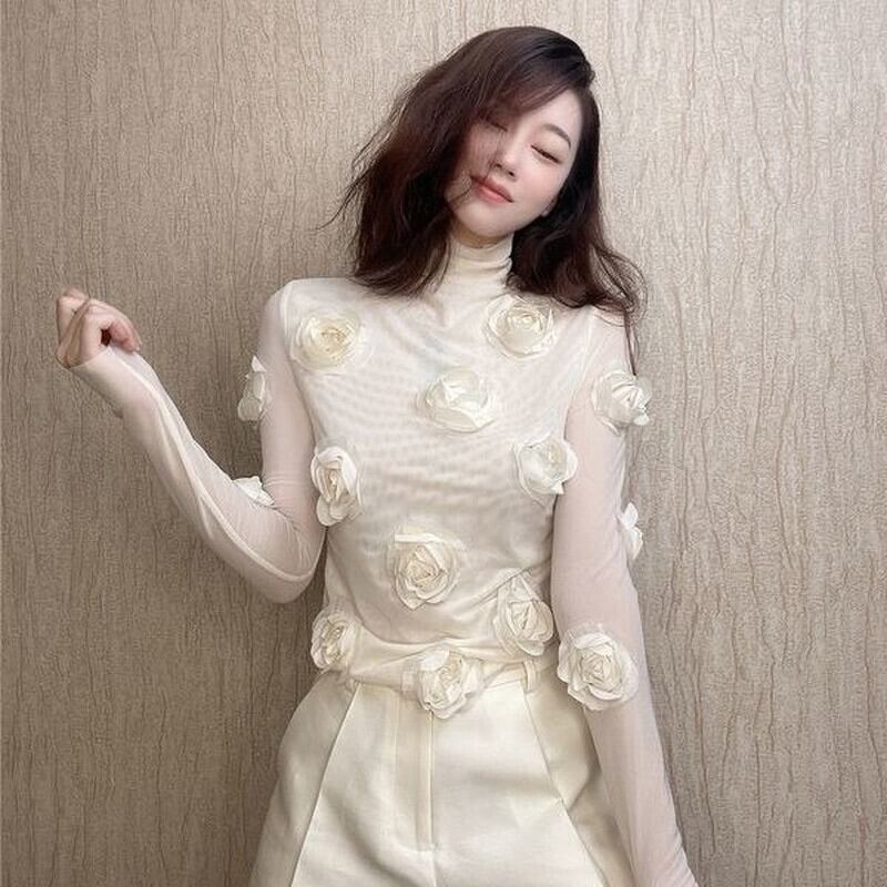 ノミクマシック3Dフラワーグラフィックシャツ長袖ハーフタートルネック女性トップス2021秋冬ベーシックプルオーバー6V710 ロング オータム 秋物 ウィンター 冬物 フラワーデザイン kor8240019677