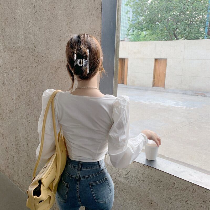 のみくまシックレースパッチワークウーマンシャツスクエアカラーパフスリーブブラウストップス2022SpringShort De ショート スプリング 春物 スクウェア kor16715339120