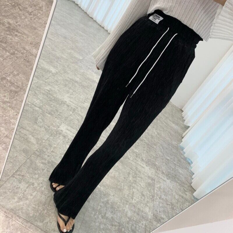 ノミクマシックサマーフォールドウーマンパンツレースアップウエストロングパンツ2021レターアップリケワイドレッグパンツ6K777 夏物 ワイドパンツ kor53172110288