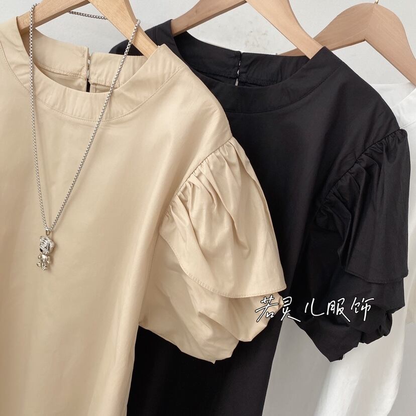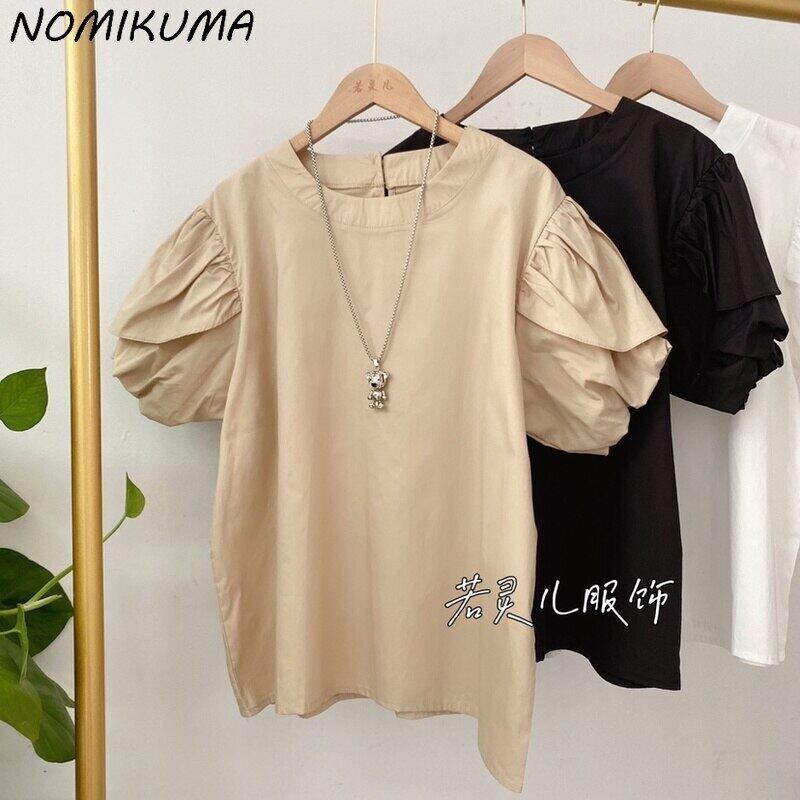 ノミクマ2022サマーランタンスリーブブラウストップスCausalO-neckChic Woman Shirt Solid Pullover De 夏物 Oネック ソリッドカラー kor21160115094