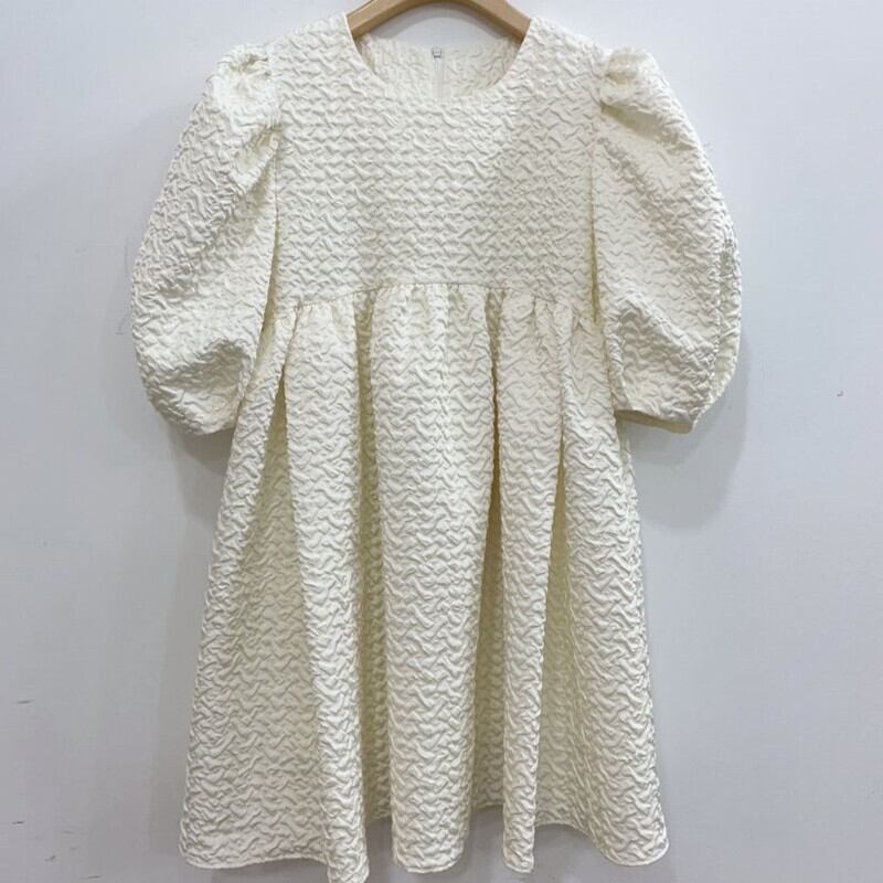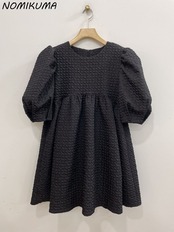 ノミクマスタイルの女性のドレススウィートシックなパフスリーブOネック春夏ウエストAラインドレス 大人ガーリー キュート カジュアル スプリング 春物 サマー 夏物 kor16065478703