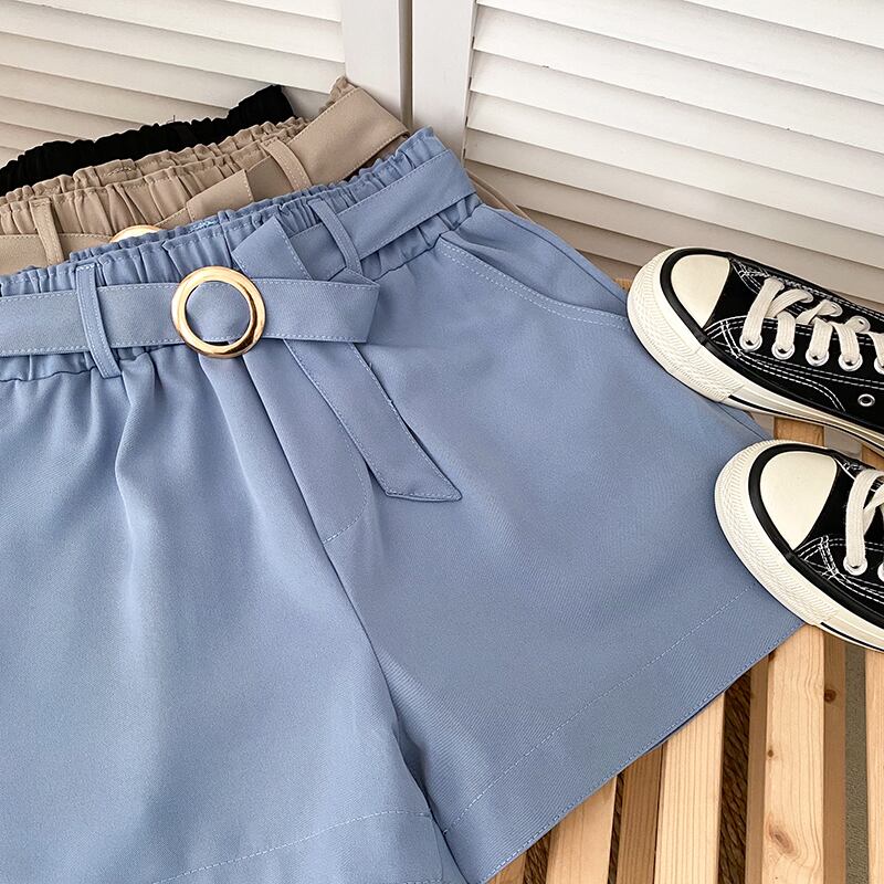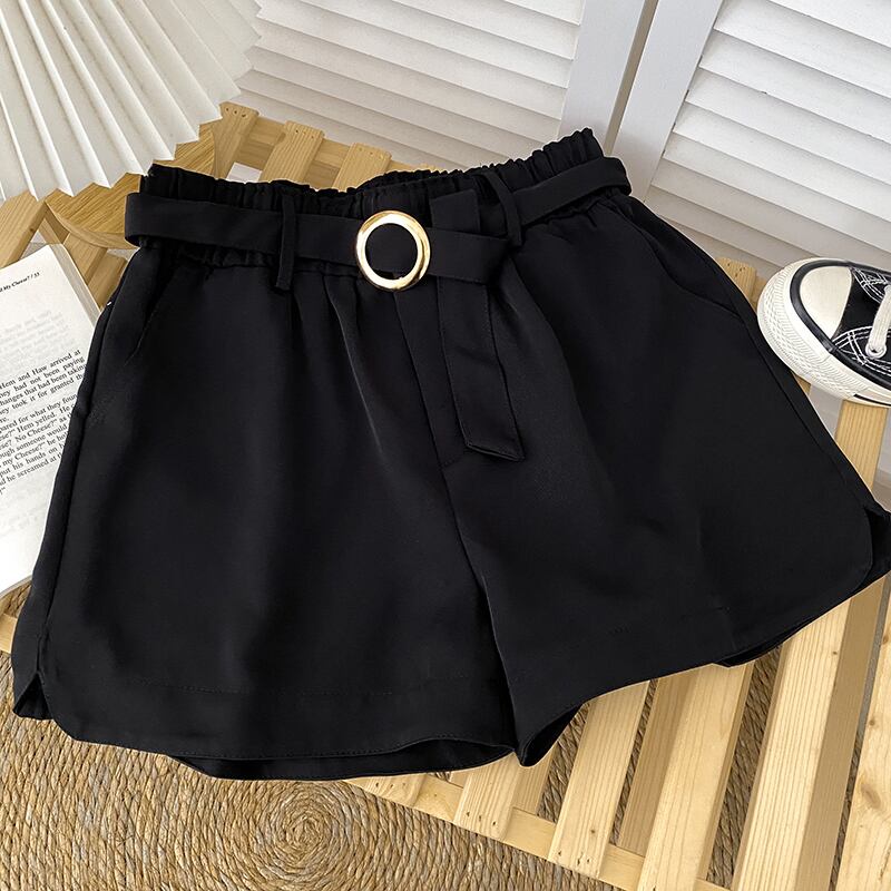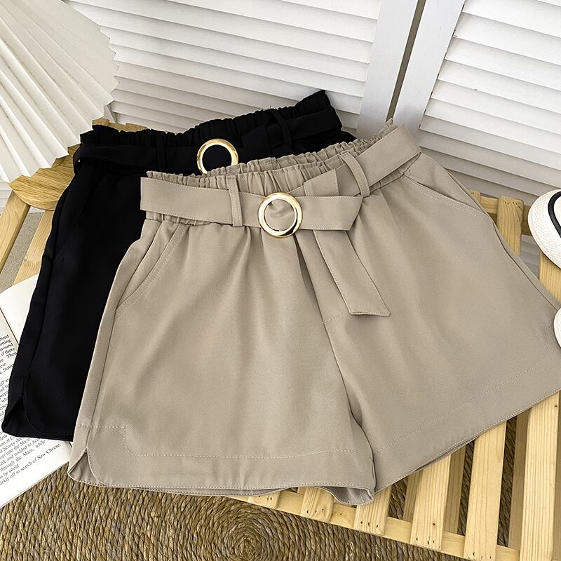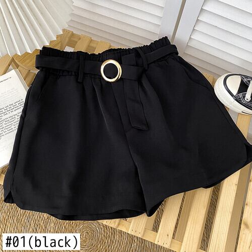 サマーショーツレディースベルト伸縮性ウエストボトム原因ソリッドワイドレッグシュロットフェミニモス エラスティック 夏物 ハーネス ブルマー ワイドパンツ ソリッドカラー kor94247311061