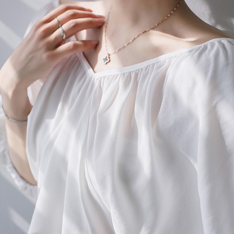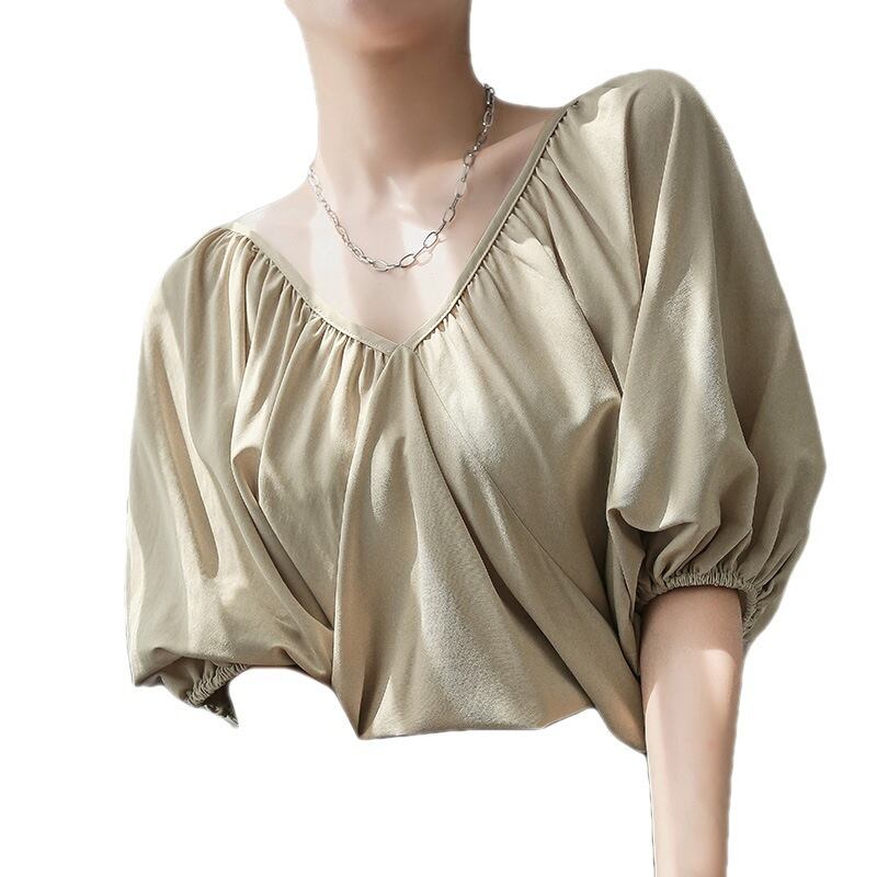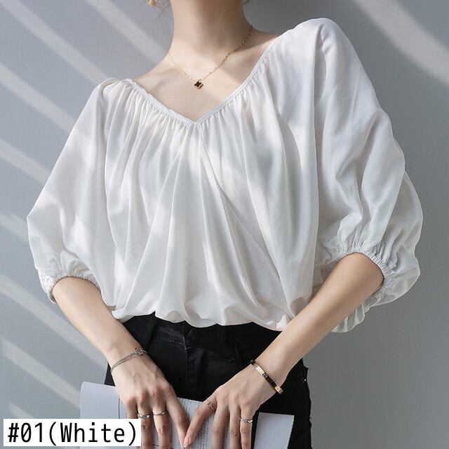 のみくまシフォン半袖女性ブラウス2022夏ディープVネックセクシーストラップレスシャツCausalSolidDe ショート ハーフスリーブ サマー 夏物 ソリッドカラー kor74753234916