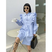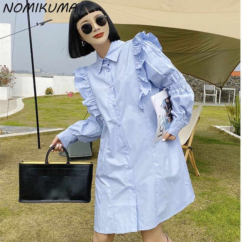 ノミクマ2022シックなフリルブラウスドレス女性長袖シングルブレストターンダウンカラードレス春のVestidos ロング スプリング 春物 kor80808845828