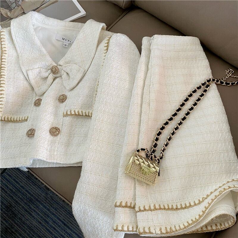 ノミクマレディーススカートセット2021秋シックボウノットショートコート+ウエストAラインミニスカート衣装6N643 リボン オータム 秋物 kor64173085629