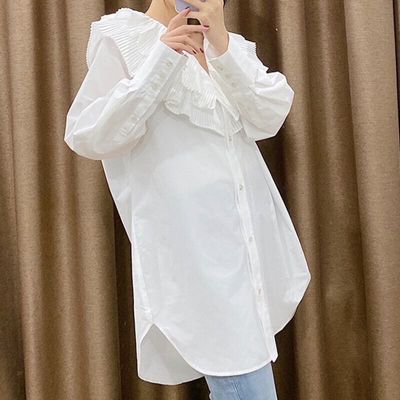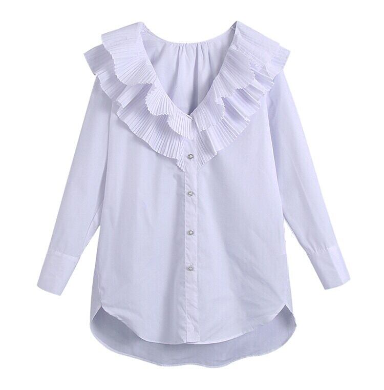 ノミクマシックフォールドダブルフリルパッチワークVネックブラウストップスカジュアルロングスリーブウーマンシャツ2022SpringDe 長袖 スプリング 春物 kor80548494774