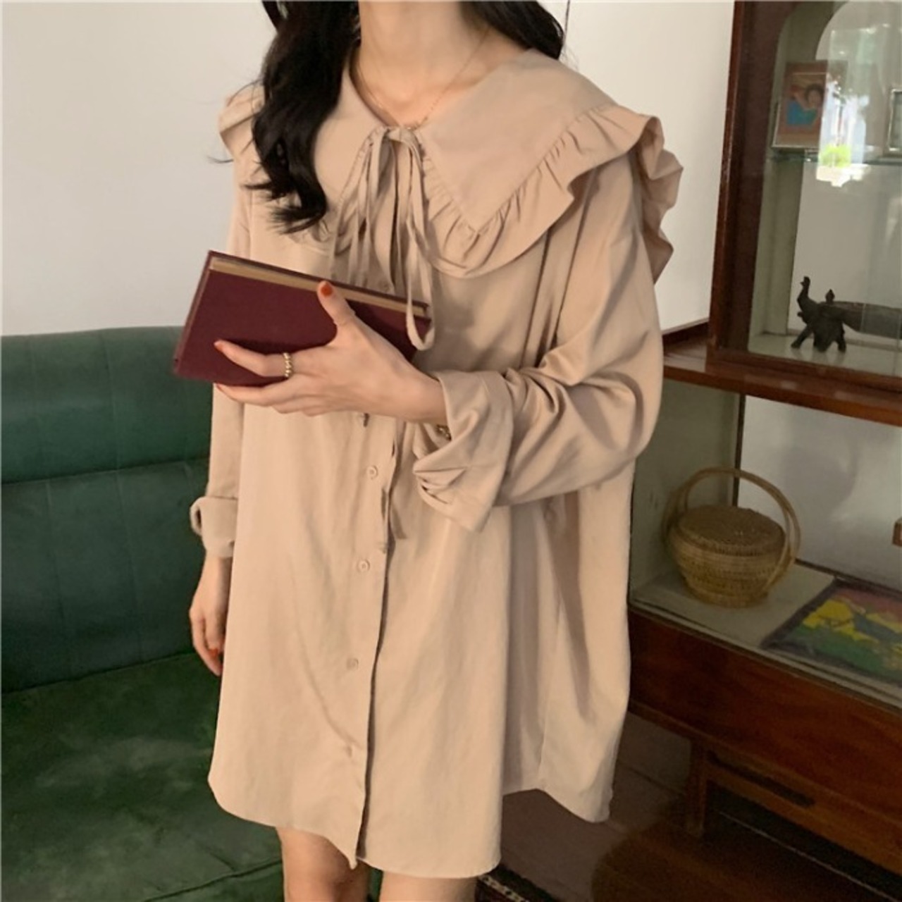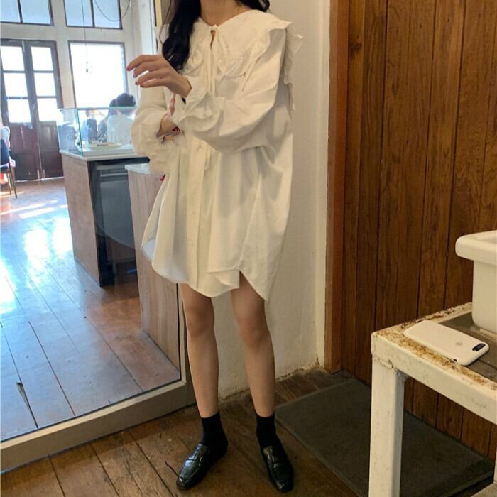 ノミクマ2021年春CausalPlusSize Women Blouse Sweet Bow Tie Peter Pan Collar Long Sleeve Shirts 6B937 ロング リボン 長袖 シャツ ブラウス 大きめサイズ 大人ガーリー スウィート キュート カジュアル スプリング 春物 kor23239885619