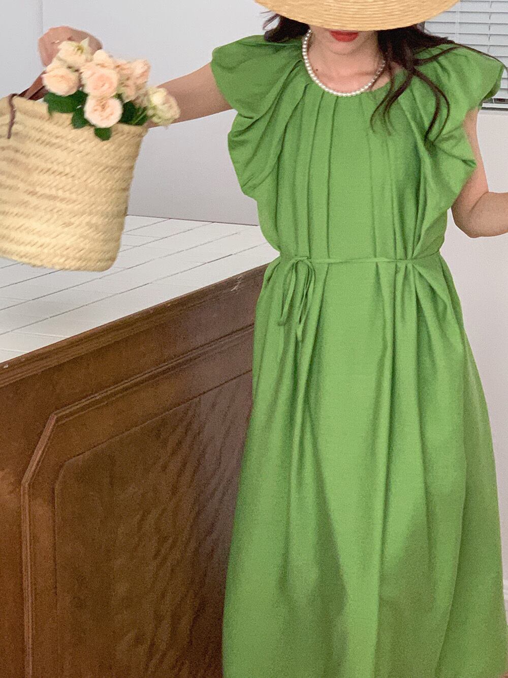 NomikuamOネックフォールド女性ドレスレースアップスリムウエスト2022夏Vestidosシックなフライングスリーブドレス サマー 夏物 kor57094941339
