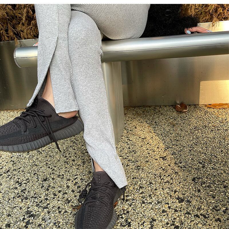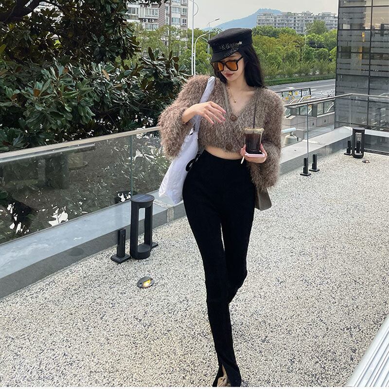 ノミクマニットスリムスプリットフレアパンツレディースエラスティックウエストロングパンツ2021秋冬セーターパンツ6N209 伸縮 オータム 秋物 ウィンター 冬物 kor61878718662