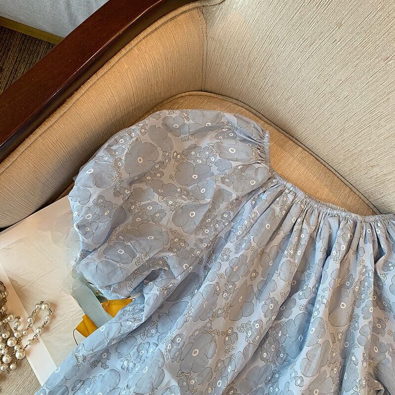 ノミクマ2021パフスリーブフローラルブラウストップスCausalO-neckWoman Doll Shirt Summer Sweet De Moda 6K200 大人ガーリー スウィート キュート カジュアル サマー 夏物 花柄 Oネック kor83534957681