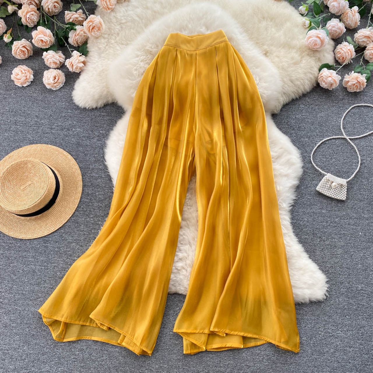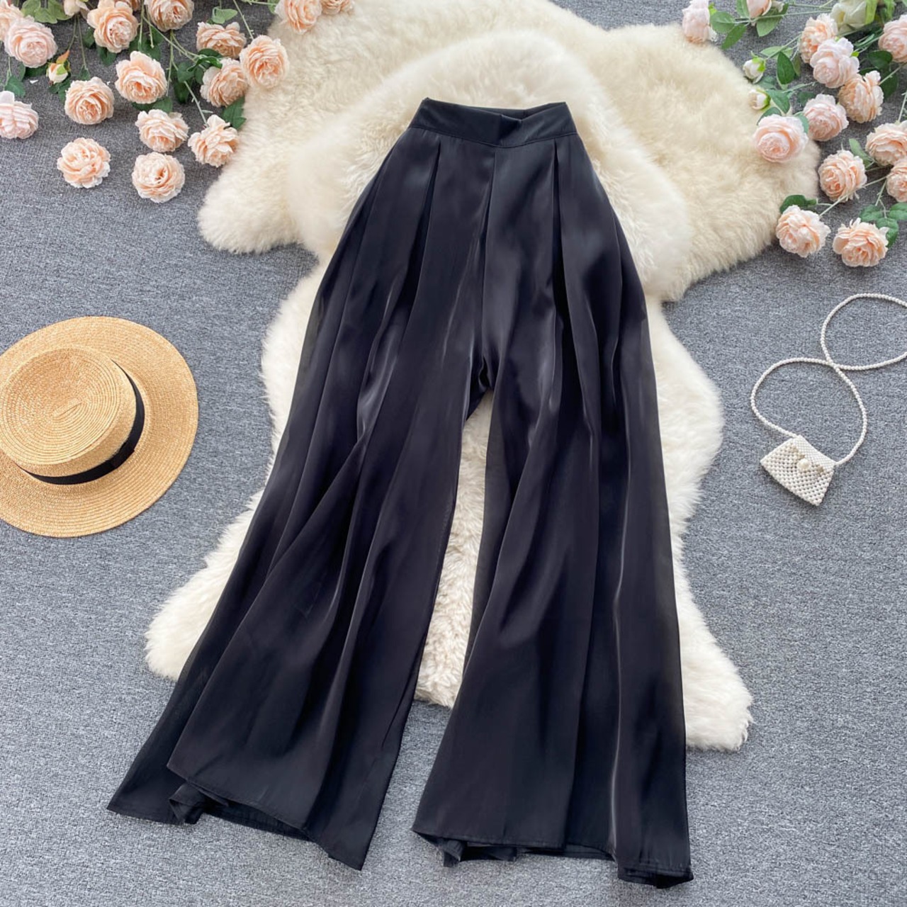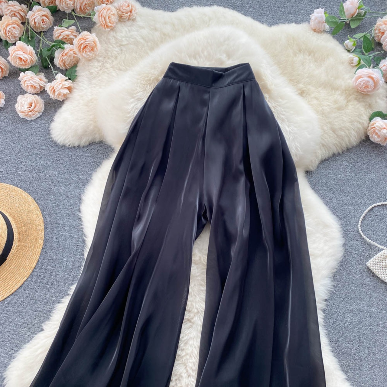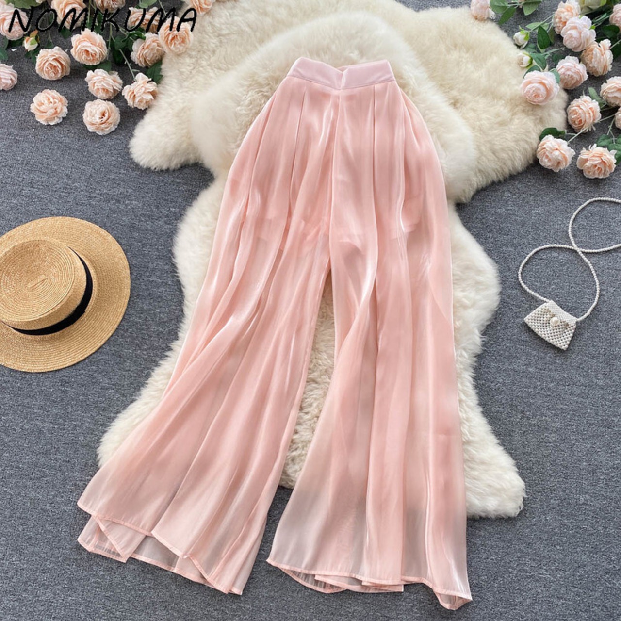 のみくまウエストウーマンパンツ2022夏パンツ因果ワイドレッグパンツパンタロン ロング サマー 夏物 ワイドパンツ kor54848556700