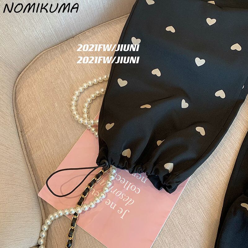 のみくまラブハートウーマンスーツパンツ2022春ウエストロングパンツ因果ドローストリングハーレムパンツ スプリング 春物 kor27014753448