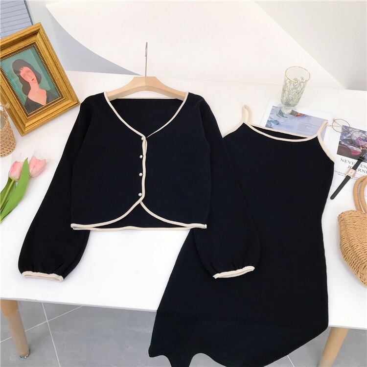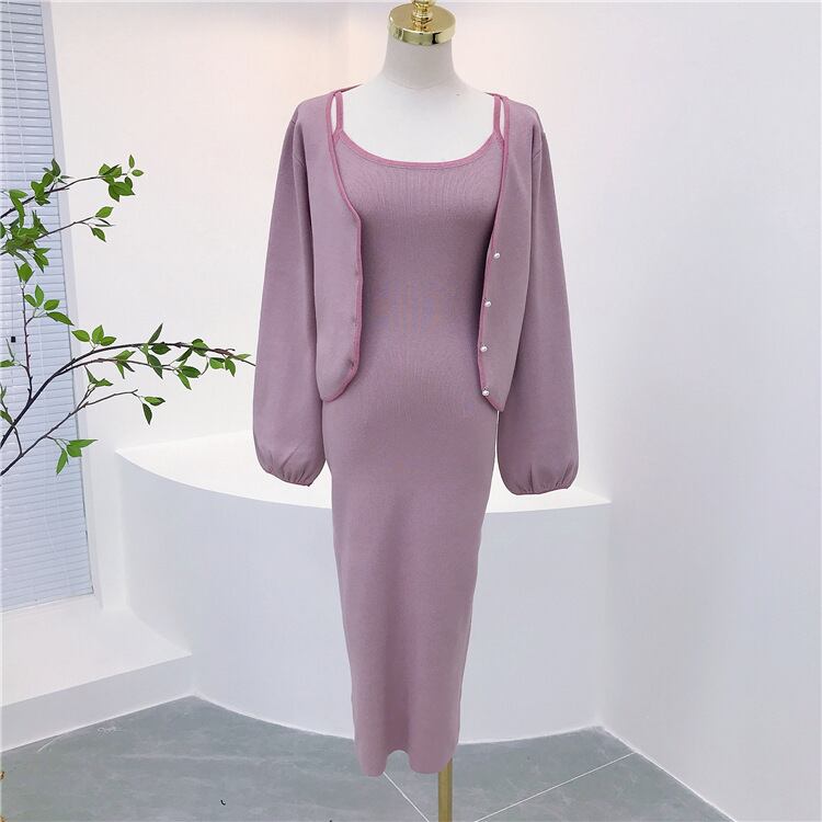 のみくまニットヒットカラーウーマンワンピースセットスリムベーシックスリングワンピース+長袖セーターカーディガン2022 ロング ドレス kor25105445169