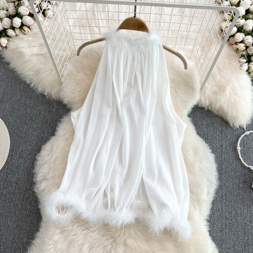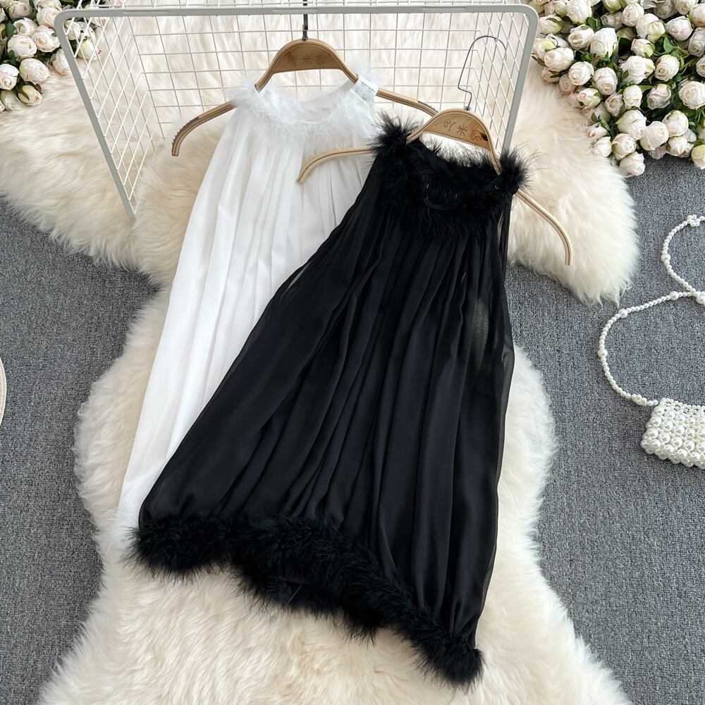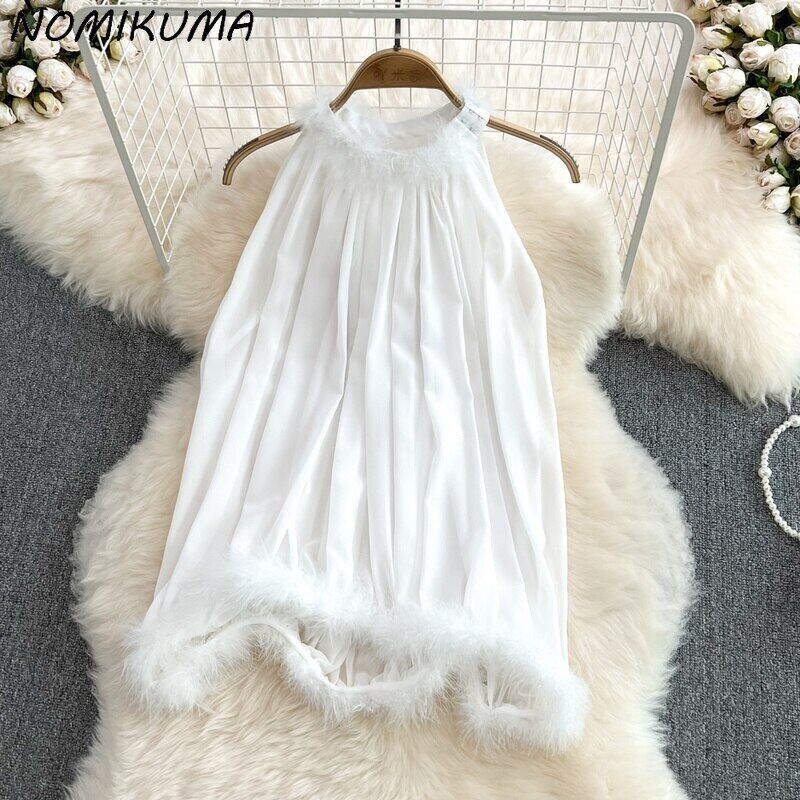 ノミクマファーパッチワークノースリーブシフォンシャツCausal2022サマーOネックブラウスシックソリッドレディーストップス 夏物 ソリッドカラー kor93053561010