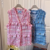 ノミクマ2021秋ミックスカラーウーマンベストシングルブレストノースリーブVネックジャケットベスト6X228 オータム 秋物 kor28259813461