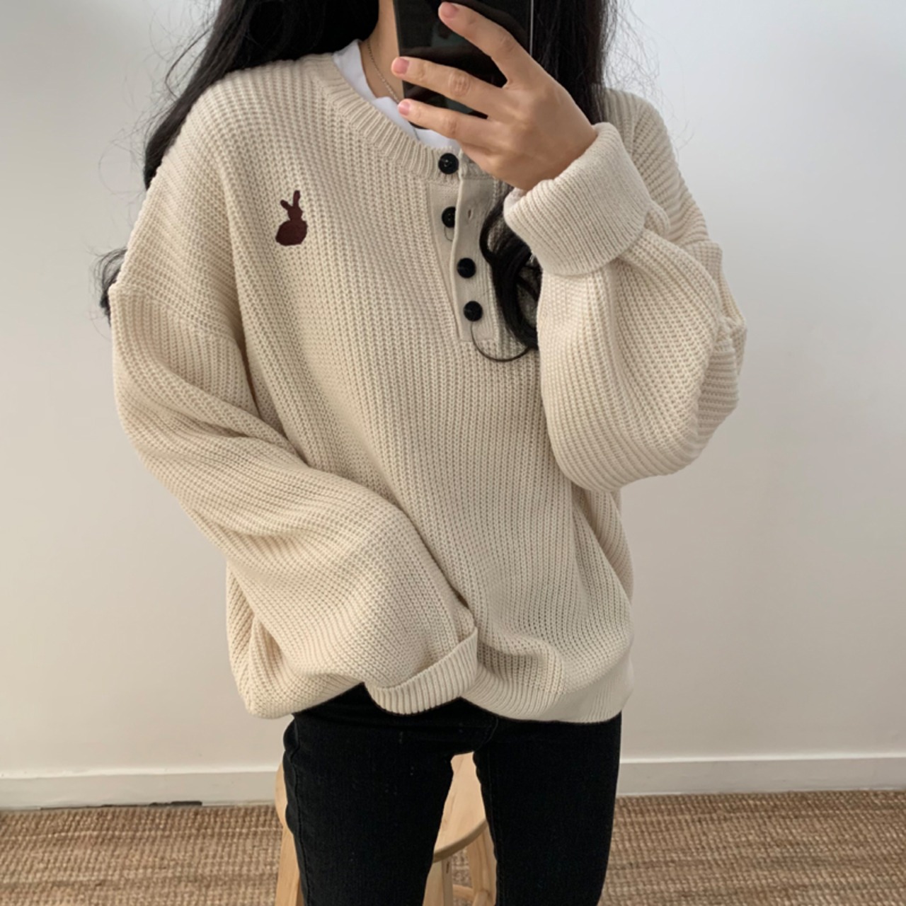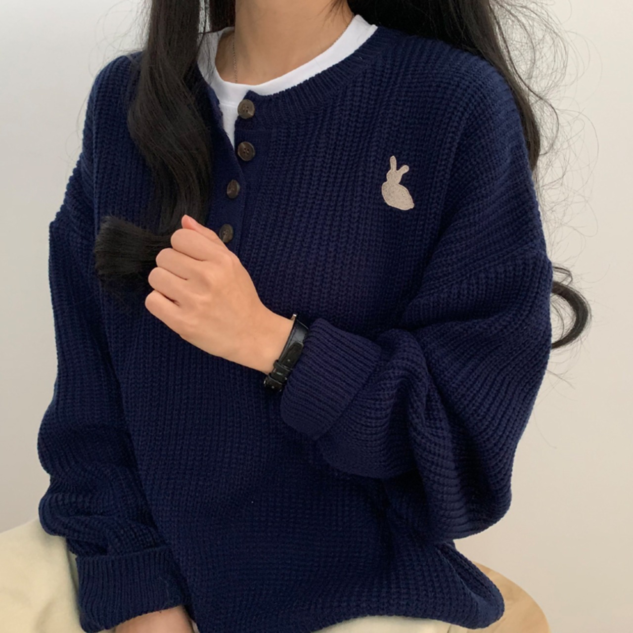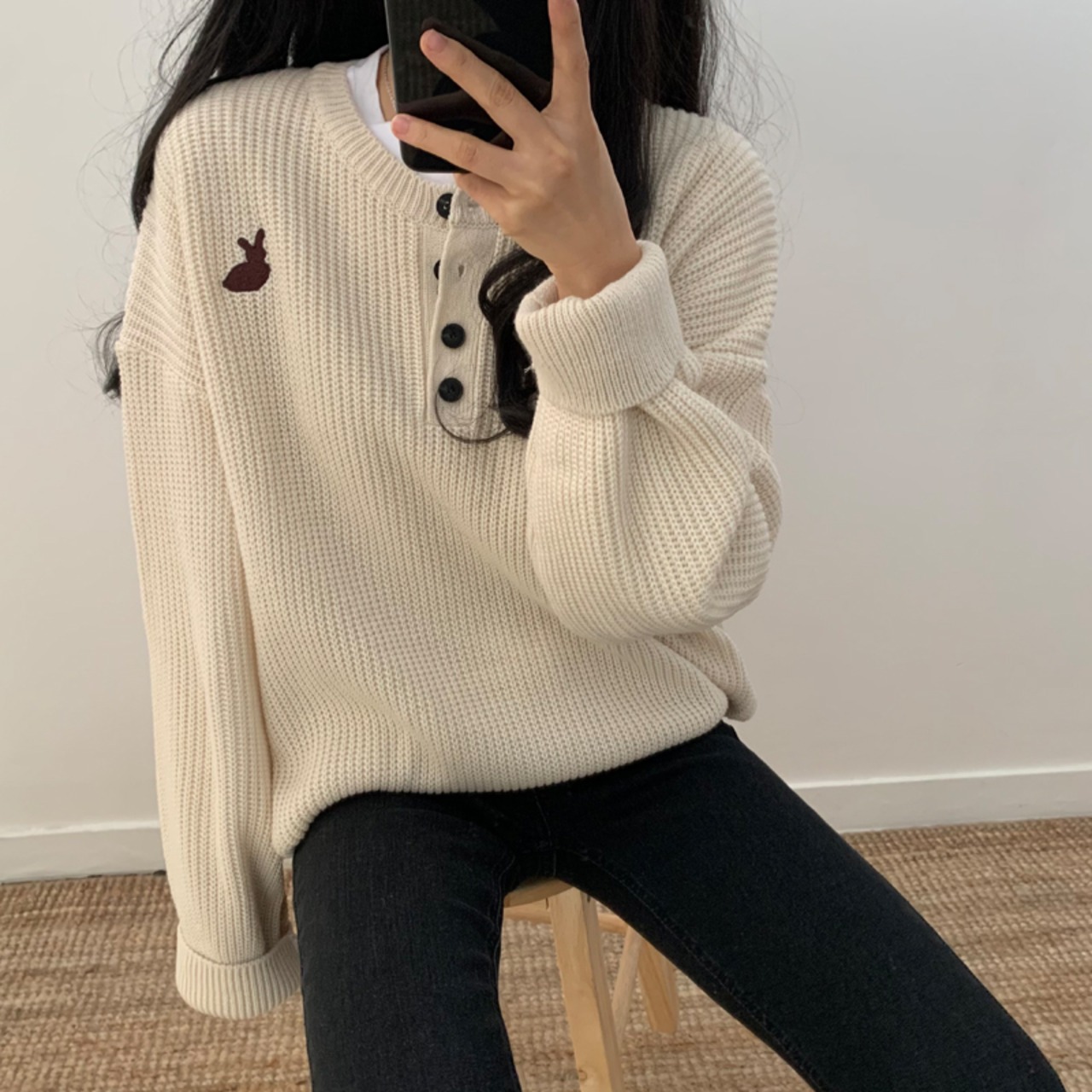 のみくま漫画刺繍女性セーター因果長袖Oネックプル2021秋冬ニットプルオーバー6L991 ロング オータム 秋物 ウィンター 冬物 kor23293325808