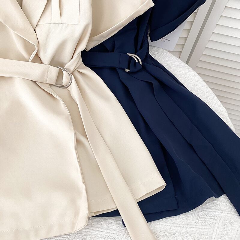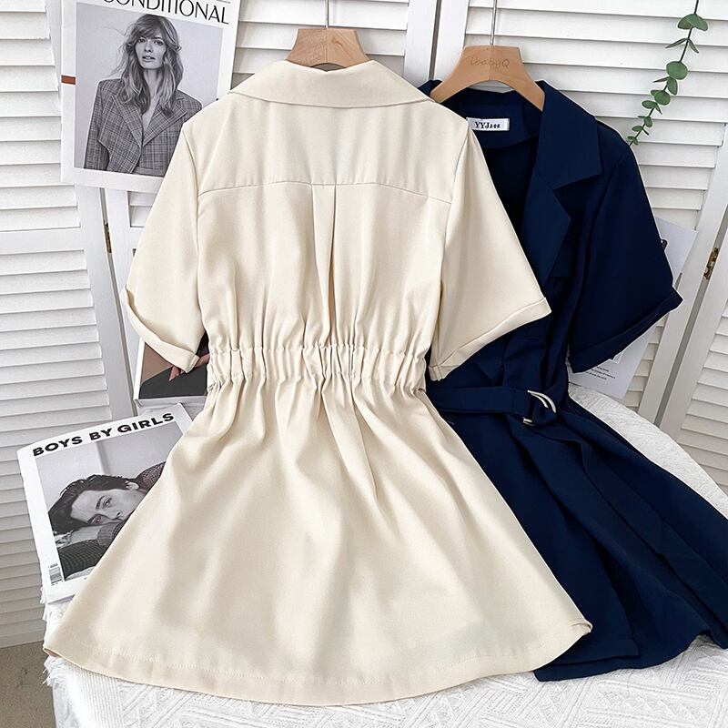 のみくまノッチカラーウーマンワンピース半袖ポケットヴェスティドスベルトスリムウエストワンピース2022 ショート ハーフスリーブ ドレス ハーネス kor77607267114