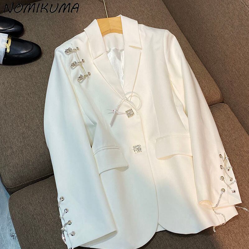 ノミクマレースアップ長袖ブレザーコート女性ノッチカラースーツジャケットCausal2022春ブレザーフェミニモス ロング スプリング 春物 kor81672279420
